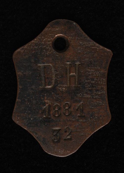 Roodkoperen penning van de hondenbelasting van Delfs...