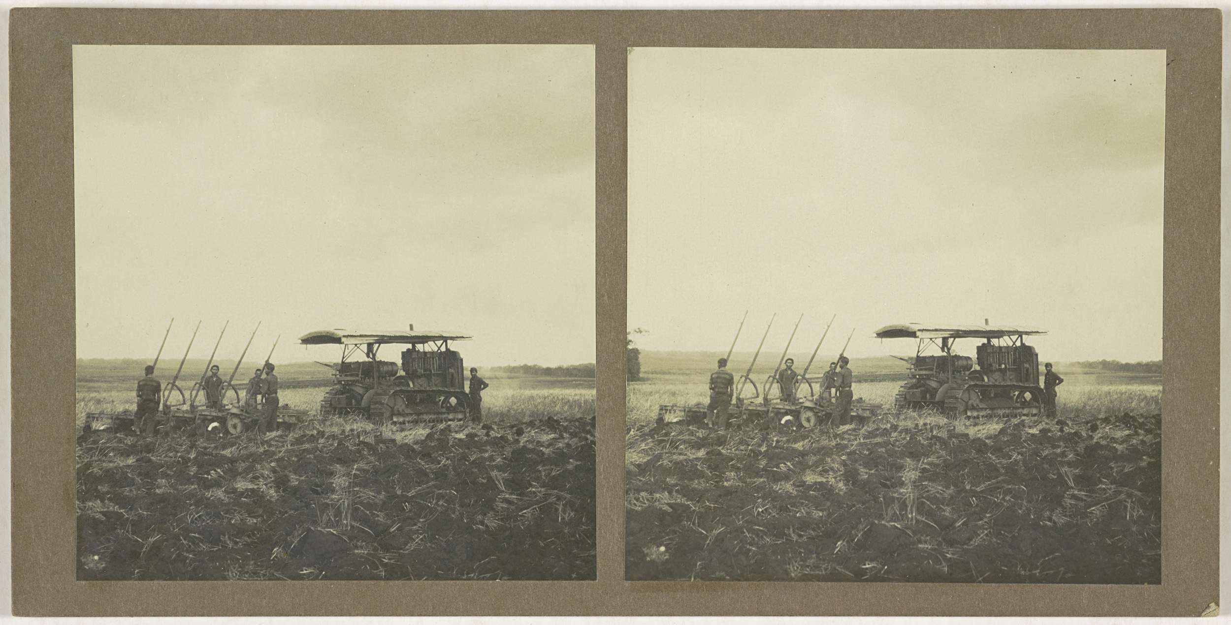 Ploegmachine met landarbeiders, mogelijk op Borneo, ...