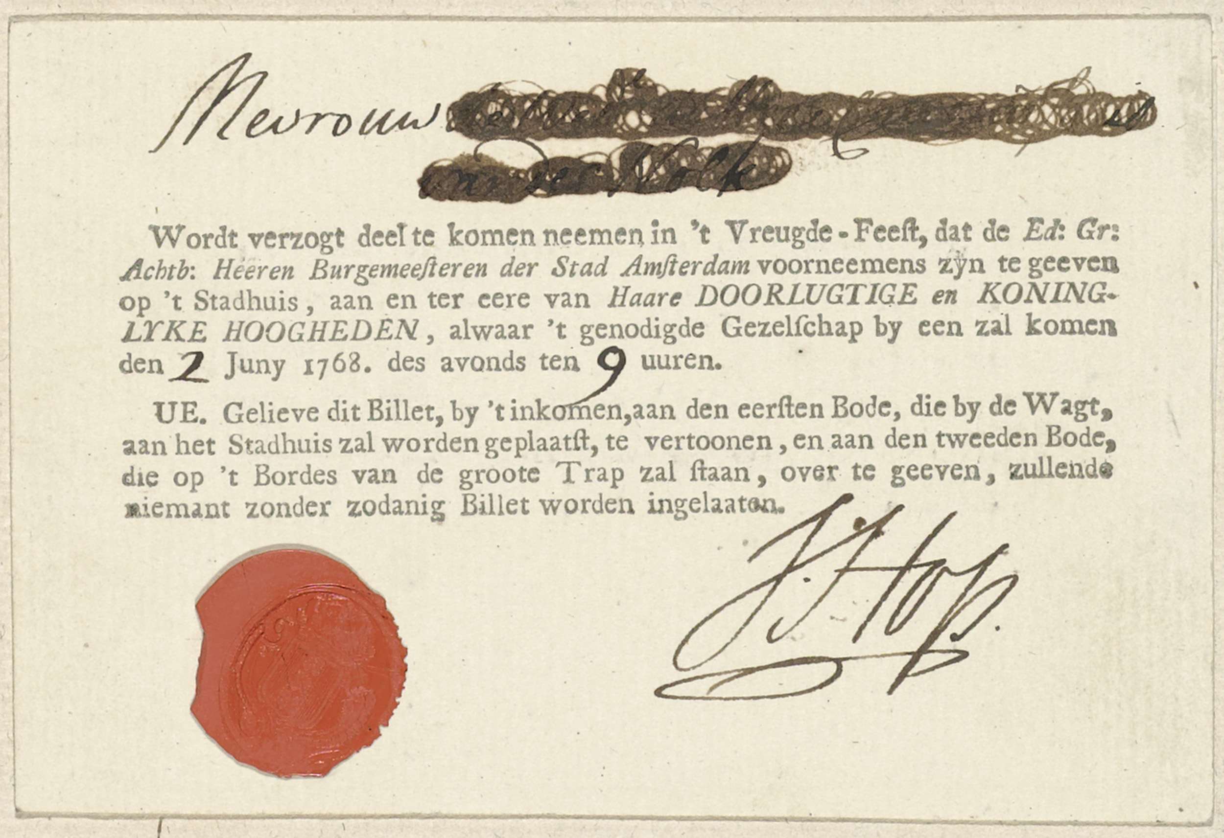 Uitnodiging voor het feest in het stadhuis bij het b...