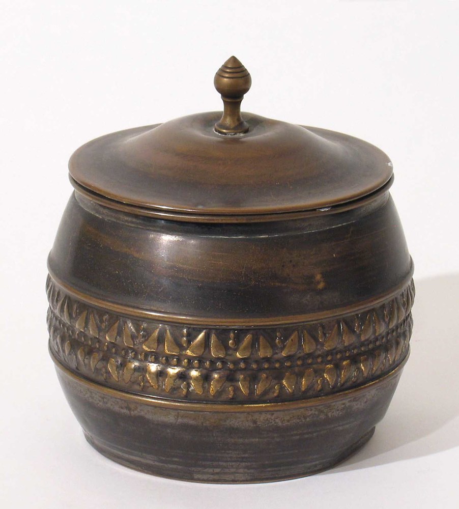 Tabakspot van gebruineerd koper,vervaardigd door Daa...