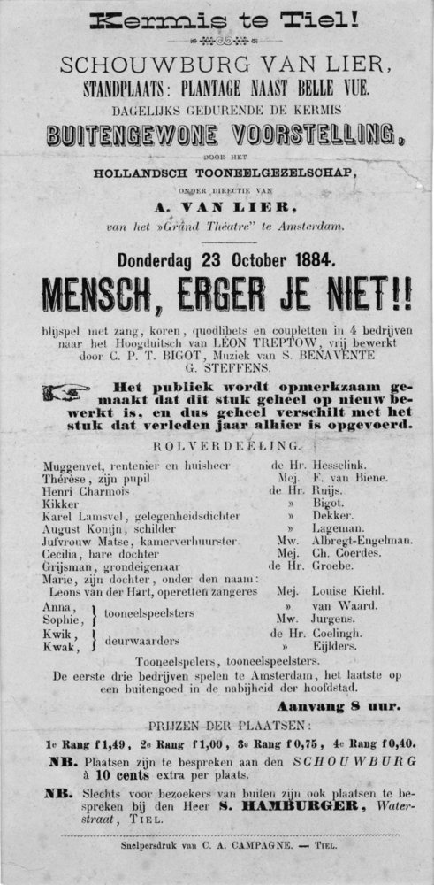 Affiche van de Buitengewone Voorstelling door het Ho...