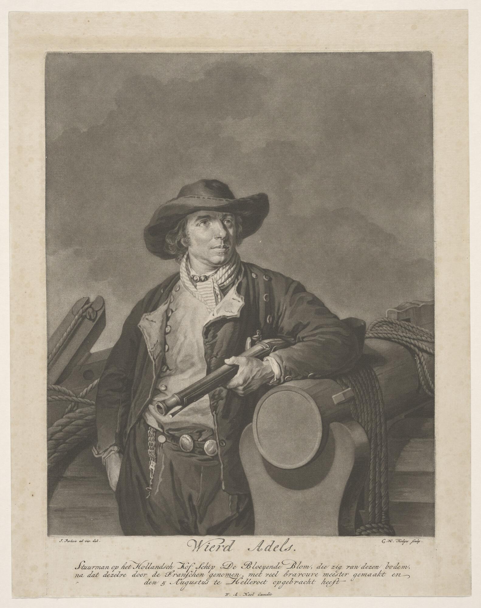 Portret van stuurman Wierd Adels op het kofschip 'De...