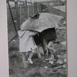 Vier kinderen ‘onder moeders paraplu’, Eindhoven/Woe...