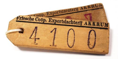 Labels van hout gebruikt door de Friesche Coöperatie...