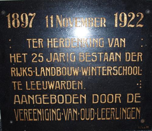 Gedenkplaat van steen van de Rijks Landbouw Wintersc...