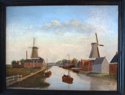 Schilderij in olieverf getiteld 'Gezicht op Leeuward...