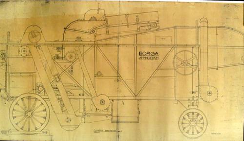 Tekening op papier van een BORGA dorsmachine gebruik...