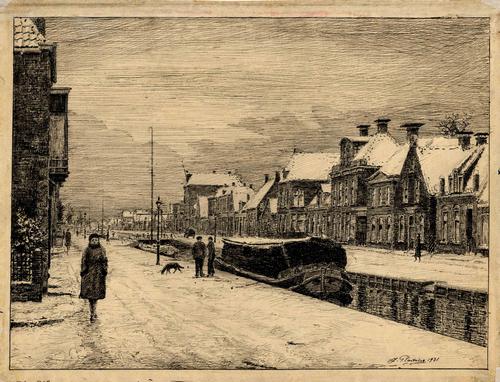 Tekening met zicht op de Zuidkade