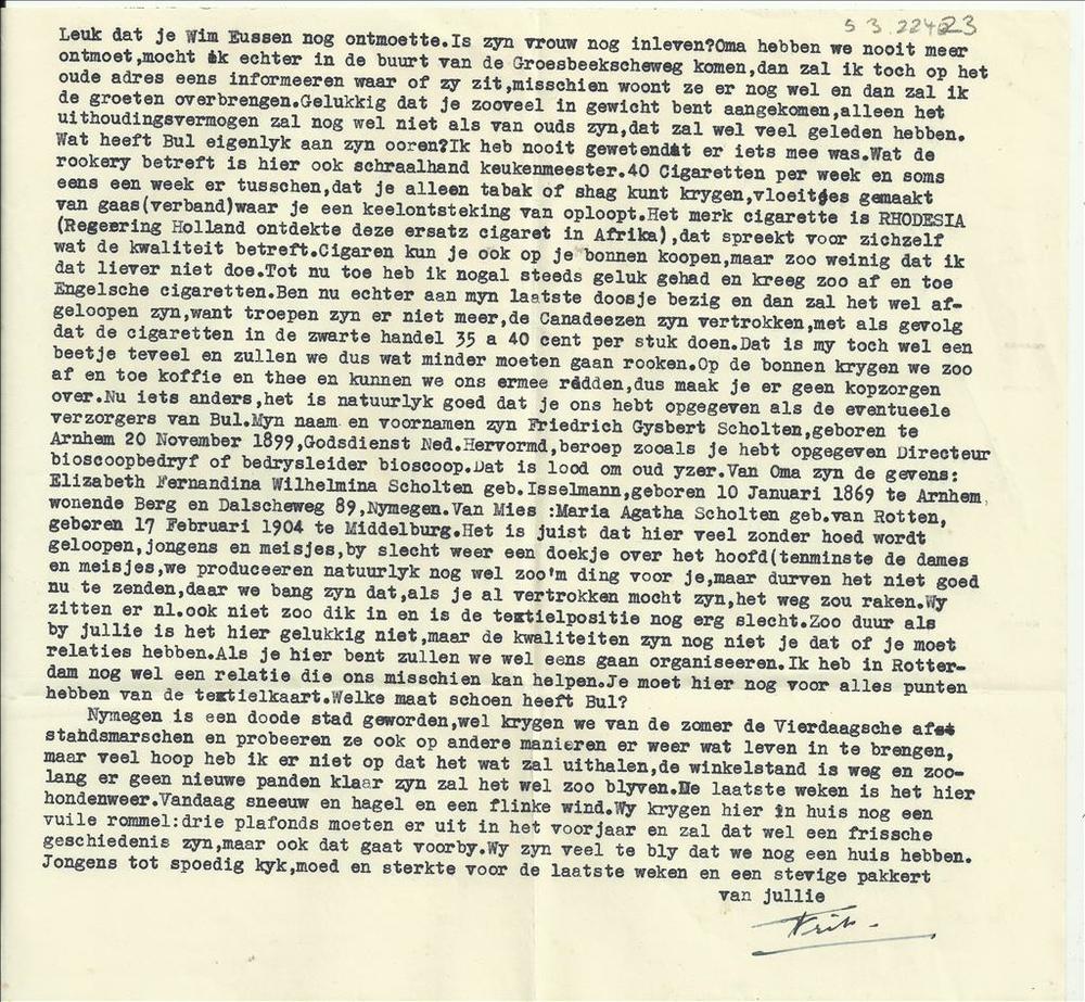 Brief, Frits geschreven te Nijmegen aan Annie en Bul...