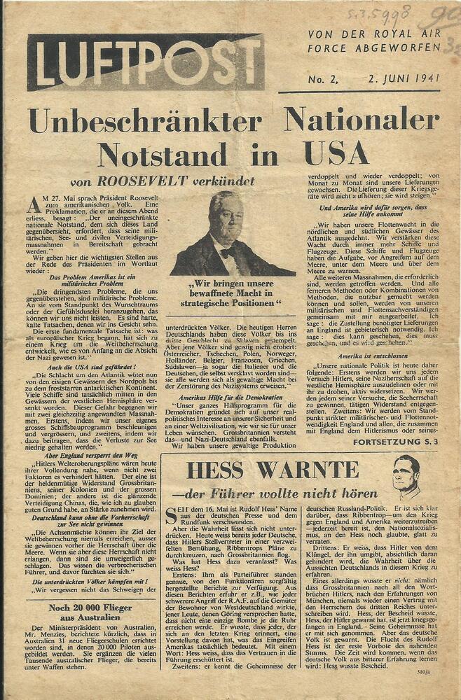 Pamflet: "Luftpost, von der Royal Air Force abgeworf...