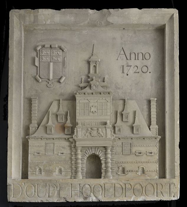 Gipsen model van gevelsteen Oude Hoofdpoort 1720