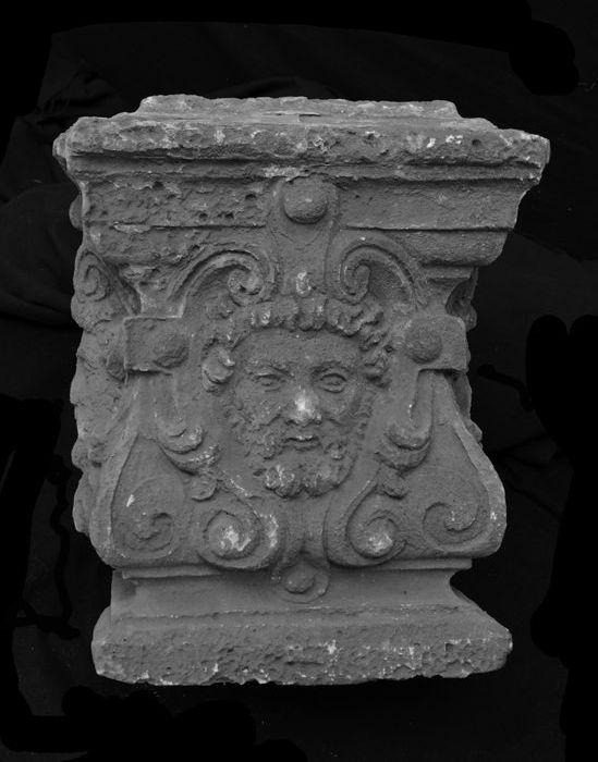 Basement van schoorsteen met drie mannenkoppen