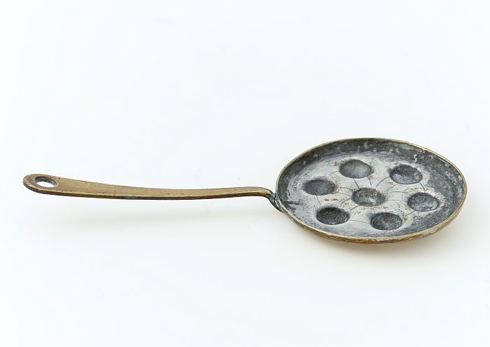 Eivormige bak van lepel met zeskantige aanzet van steel