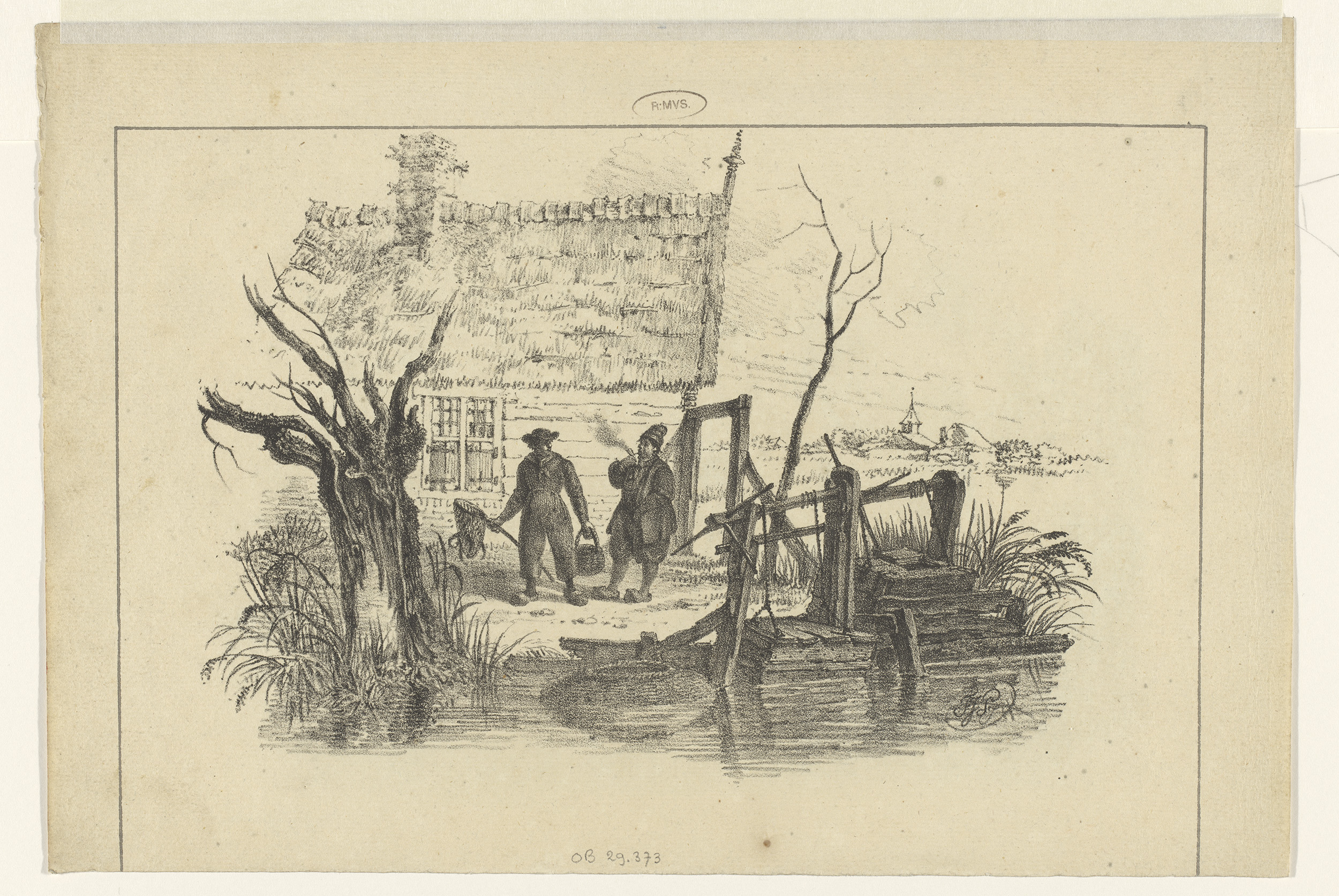 Vissers in de Scheveningse duinen nabij paviljoen Vo...