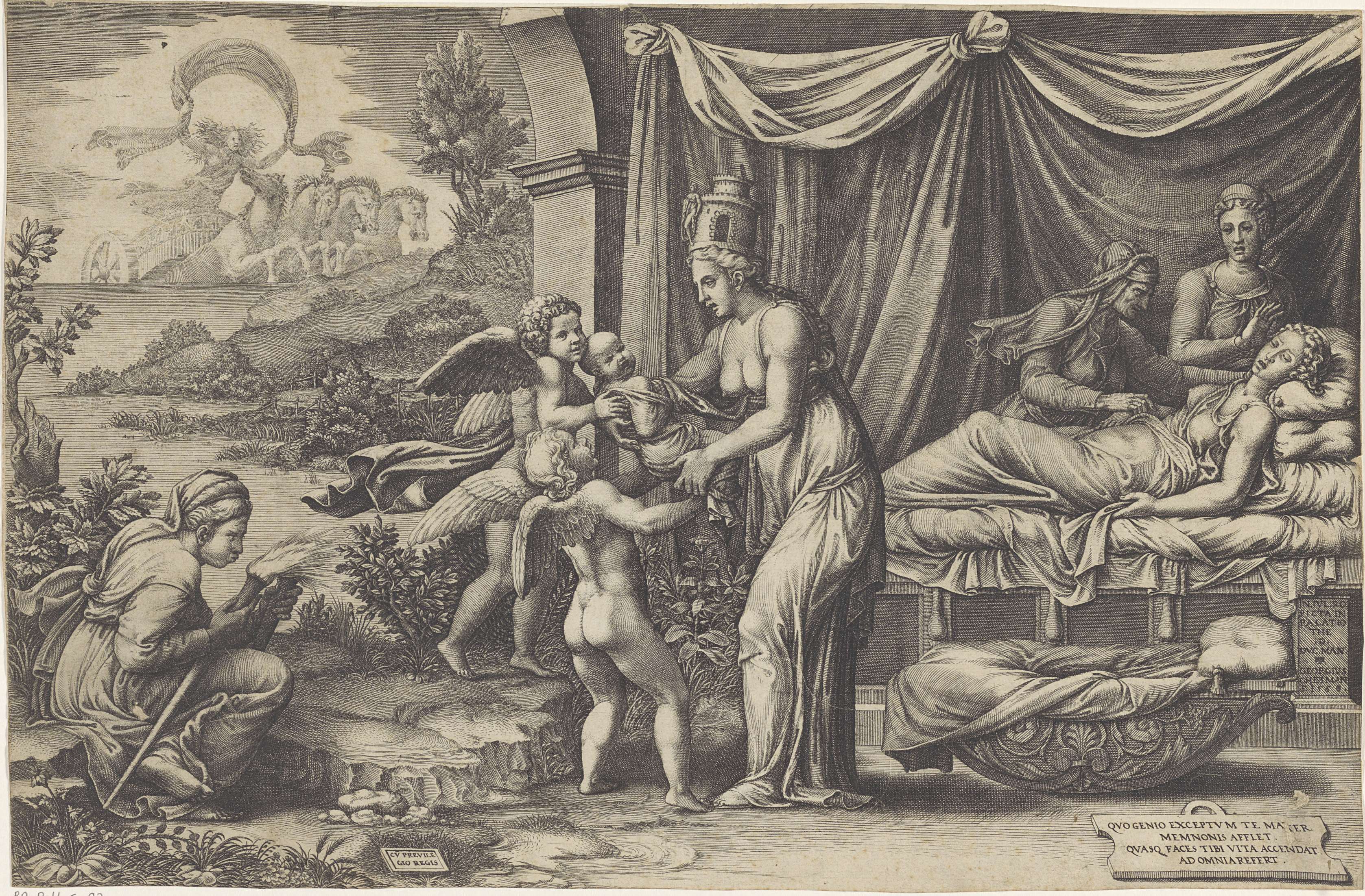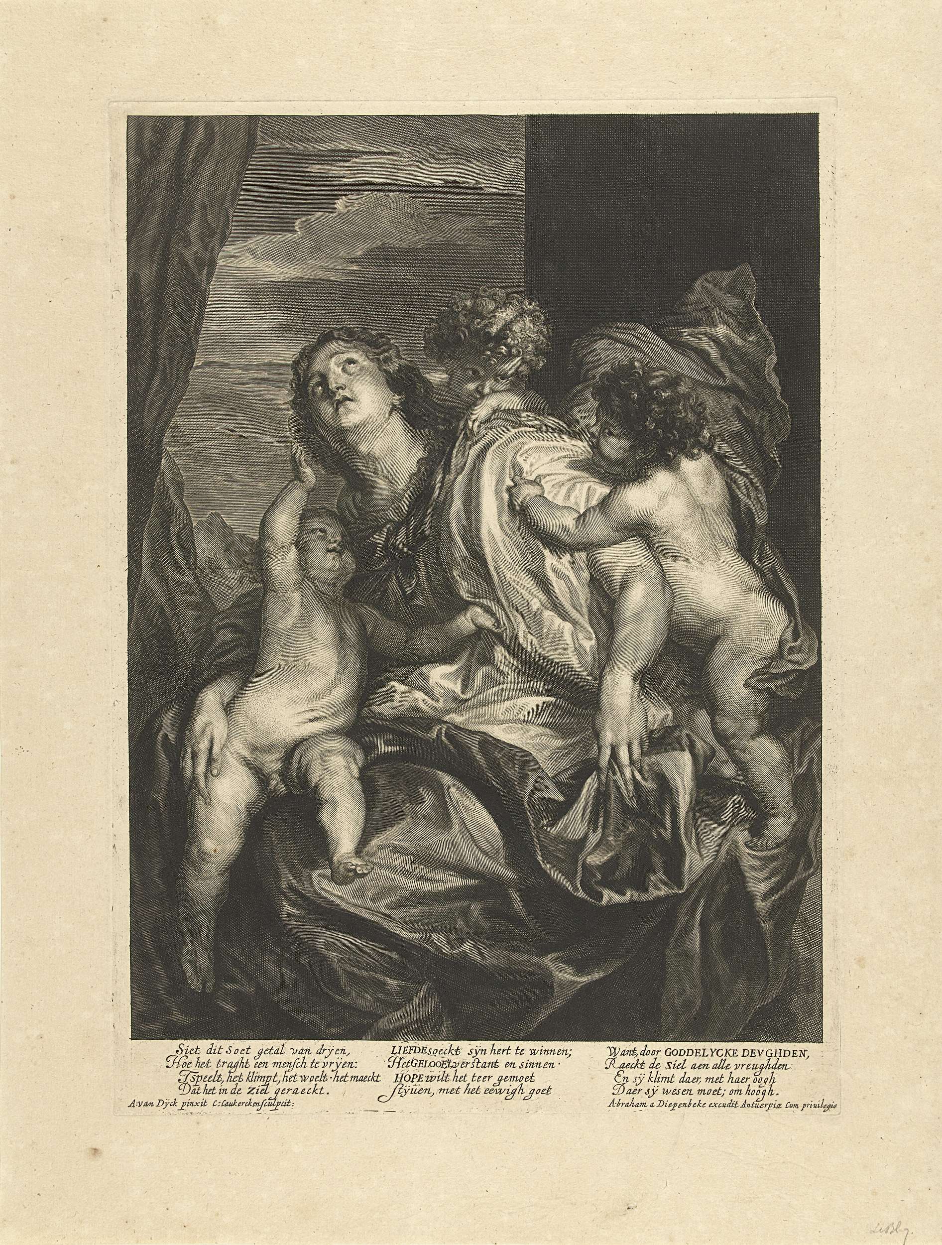 Personificatie van de ziel met Geloof, Hoop en Liefde