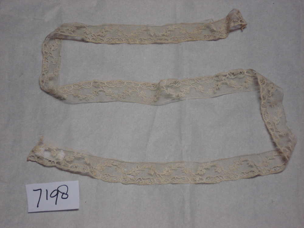 witte strook van kant; tule; met ingeweven bloemmoti...