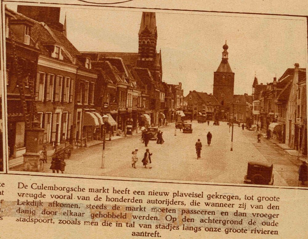 Foto, voorstellende de Markt te Culemborg, circa 1930