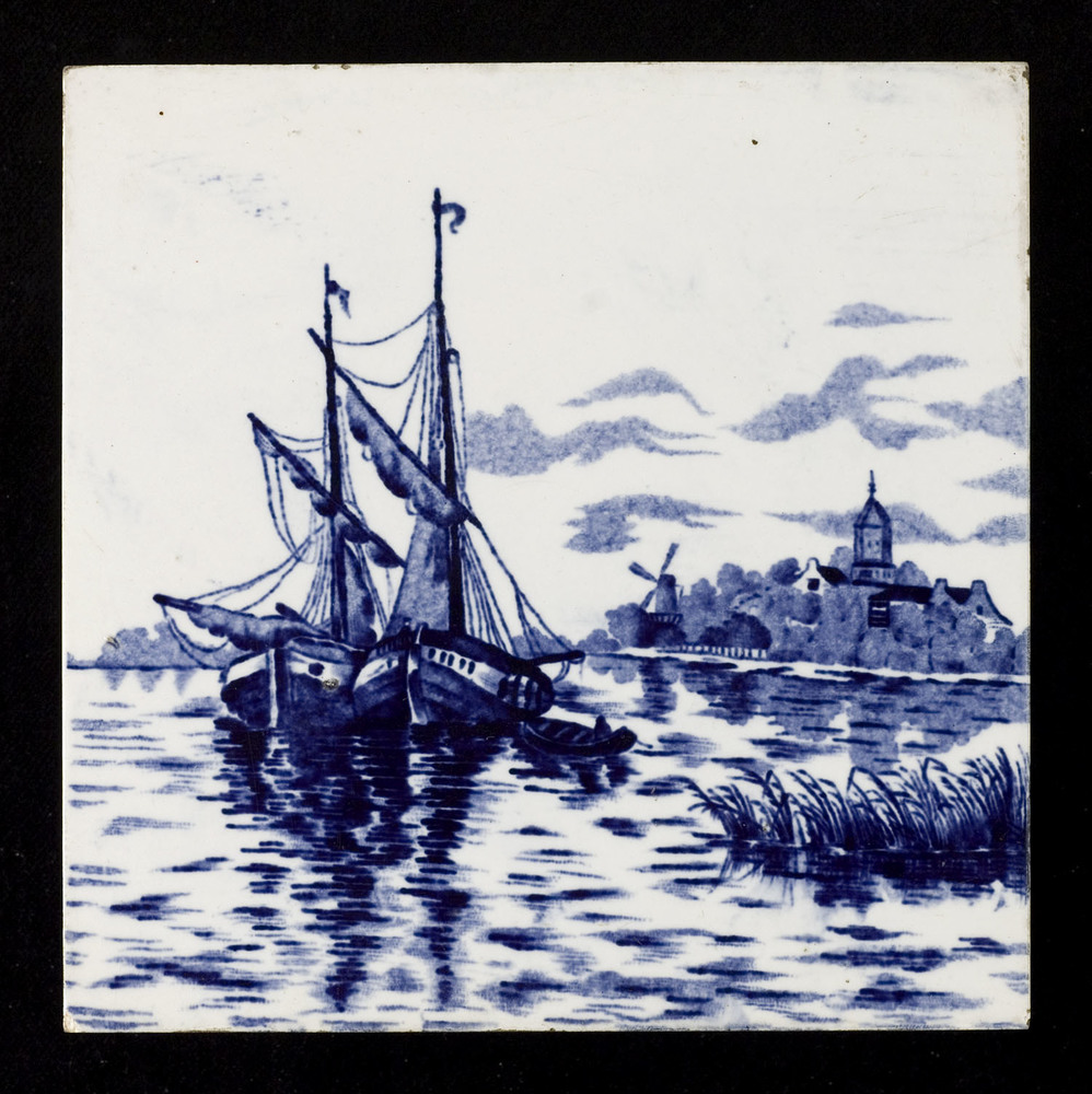 Tegel, geschilderd op biscuit, met voorstelling: Zei...