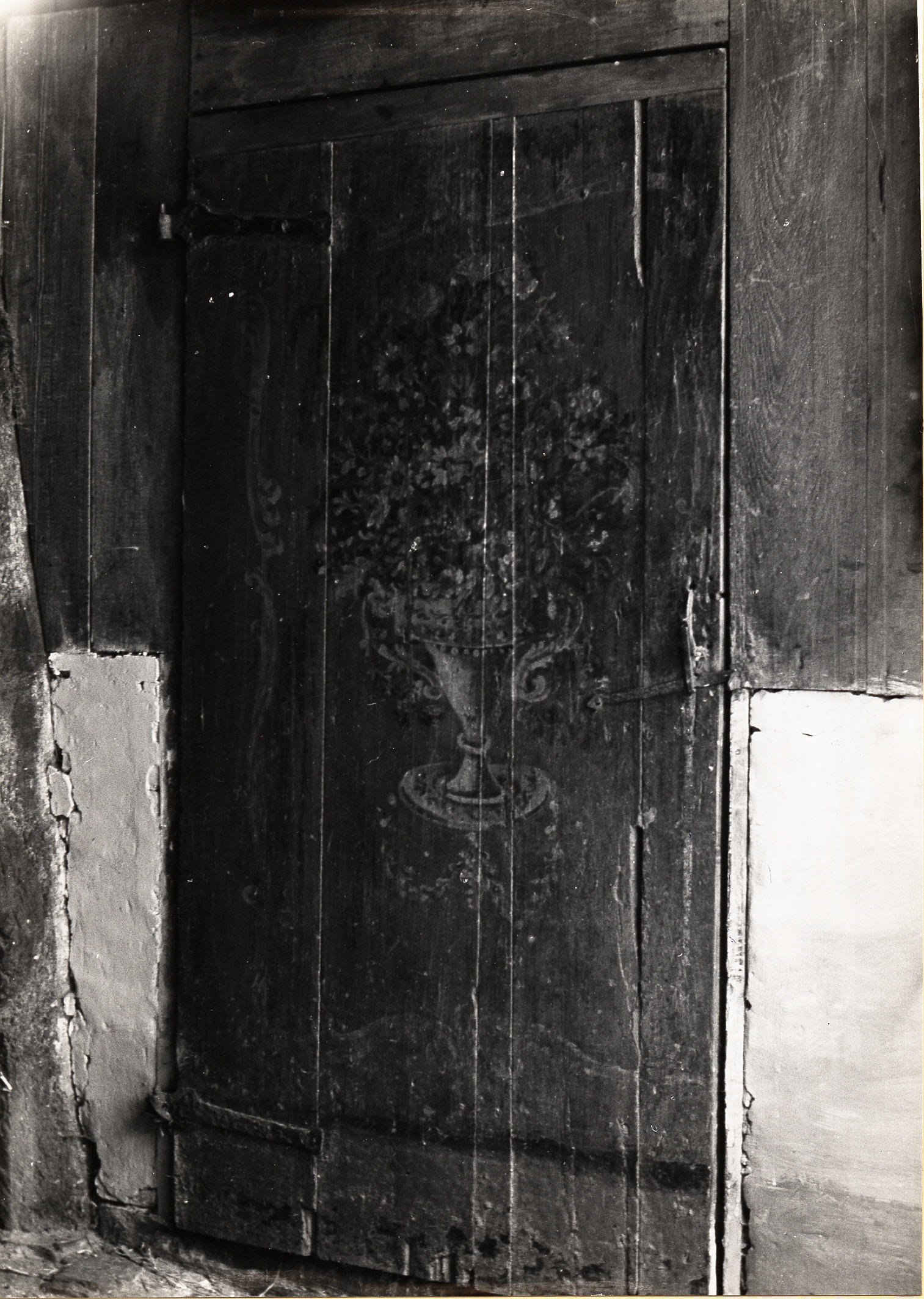 Beschilderde deur, Staphorst, 1950 (zwart-wit foto)