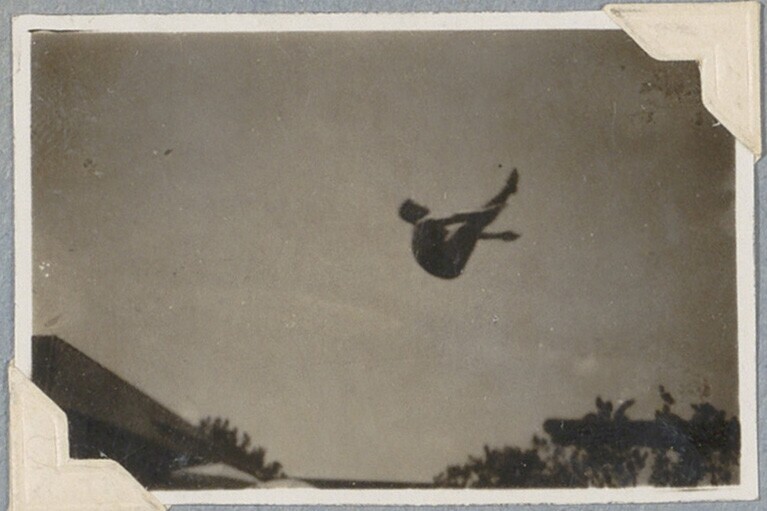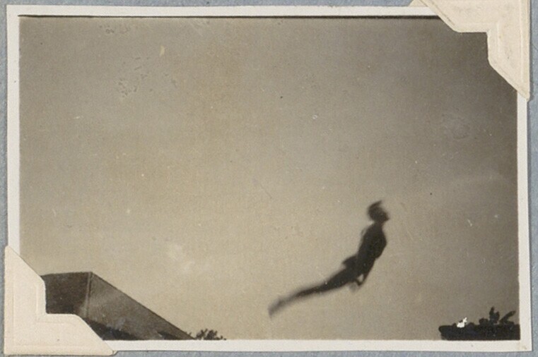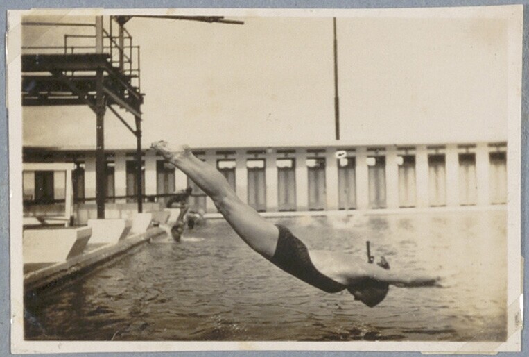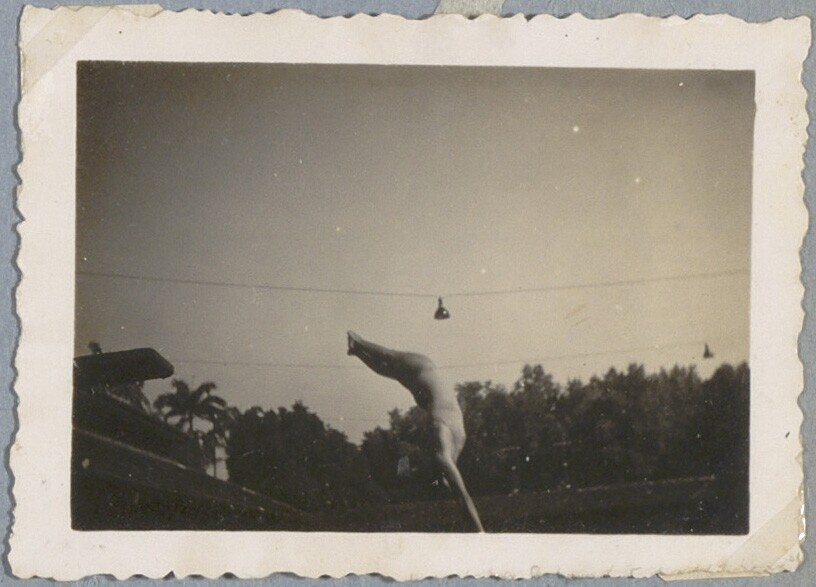 Schoonspringer tijdens Nederlands-Indische zwemkampi...