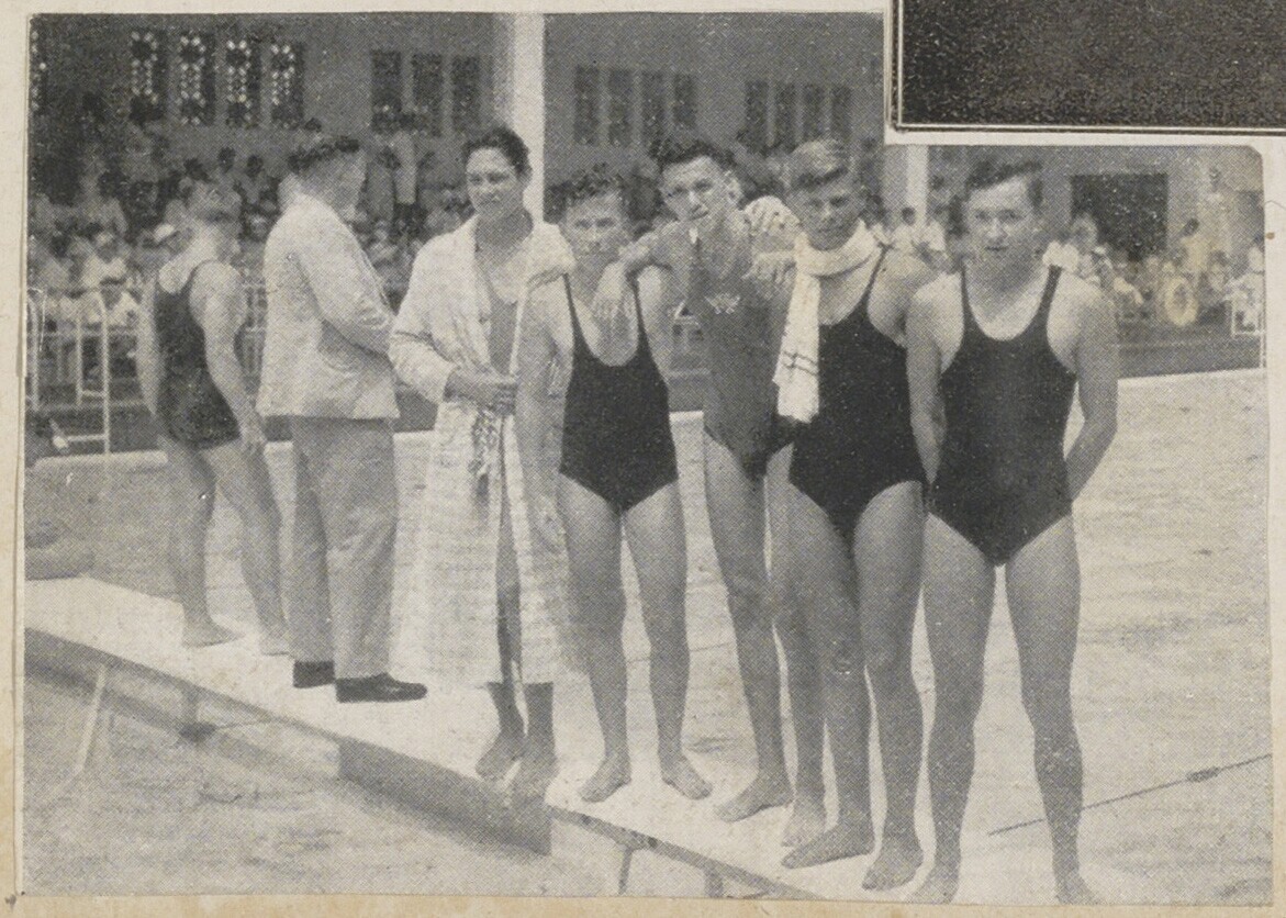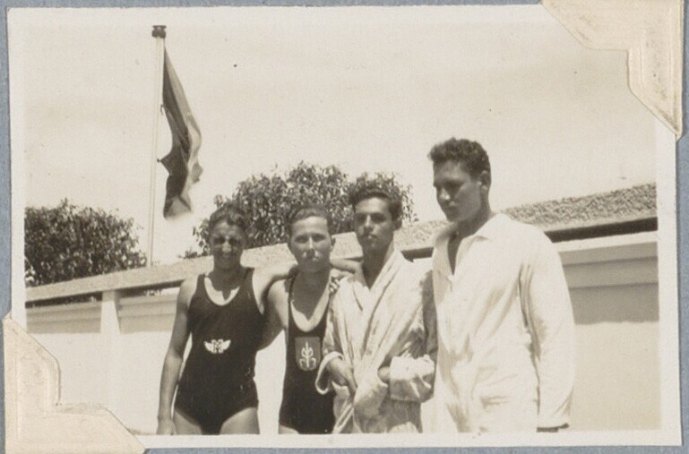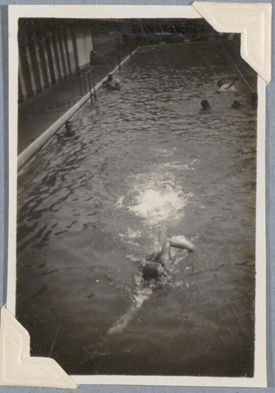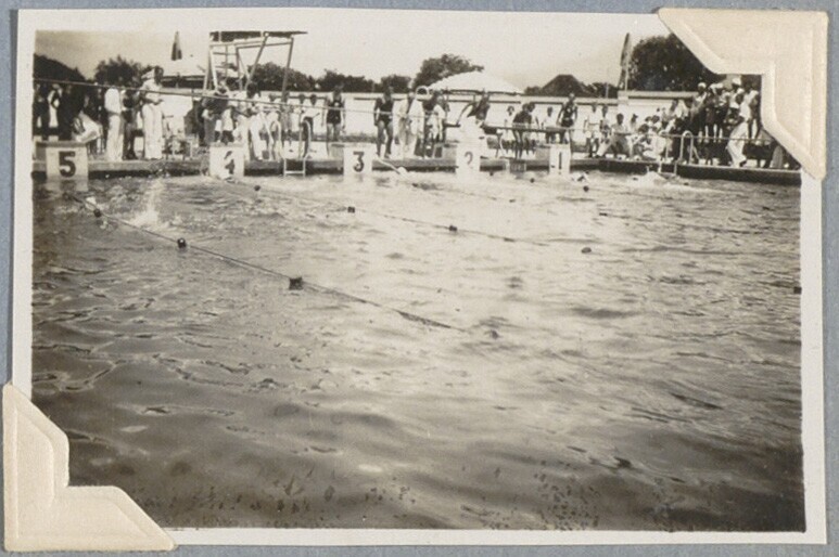 Zwembad met zwemmers tijdens Nederlands-Indische zwe...