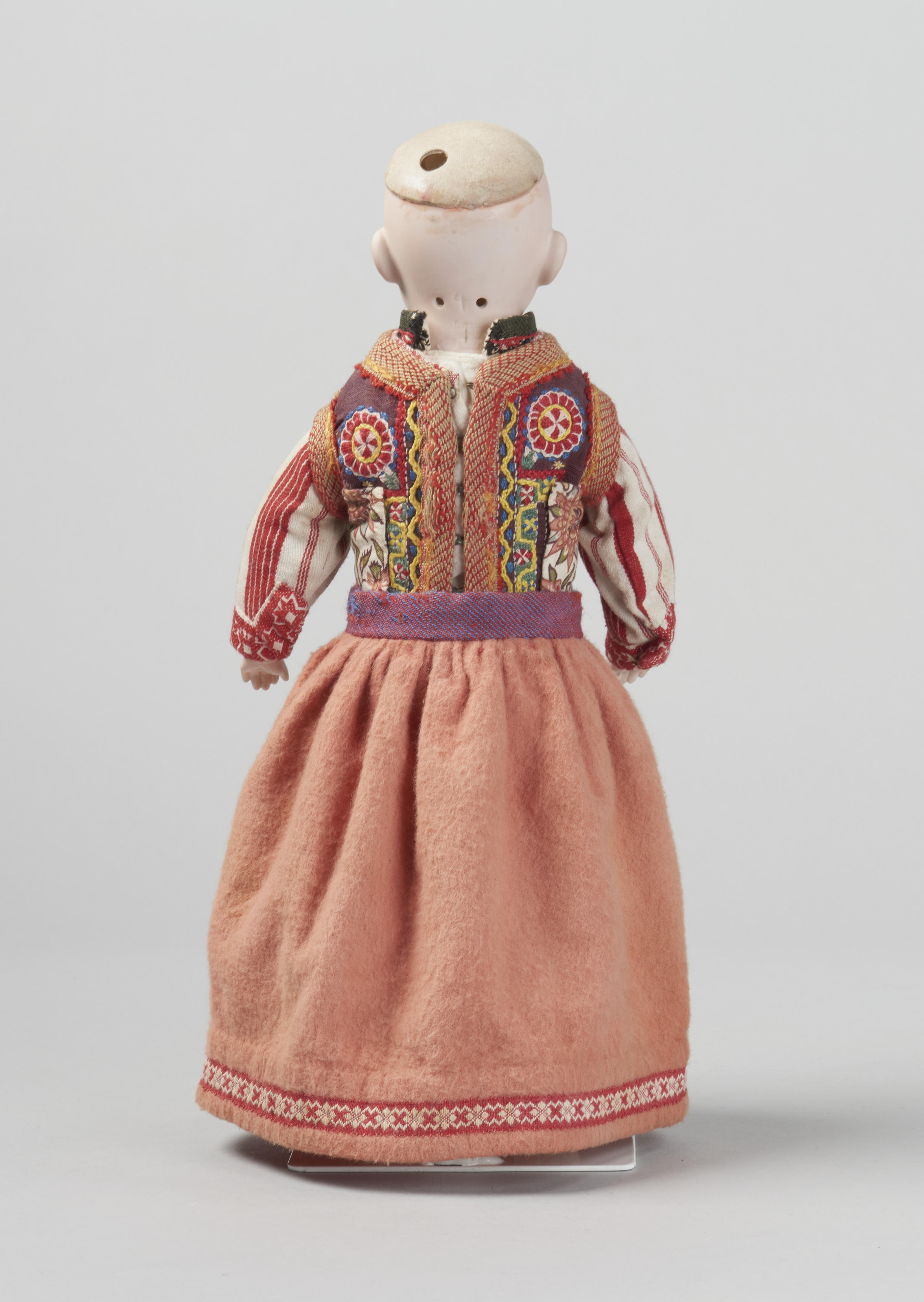 Pop in kleding van bakerkind, Hindeloopen, 1700–1800