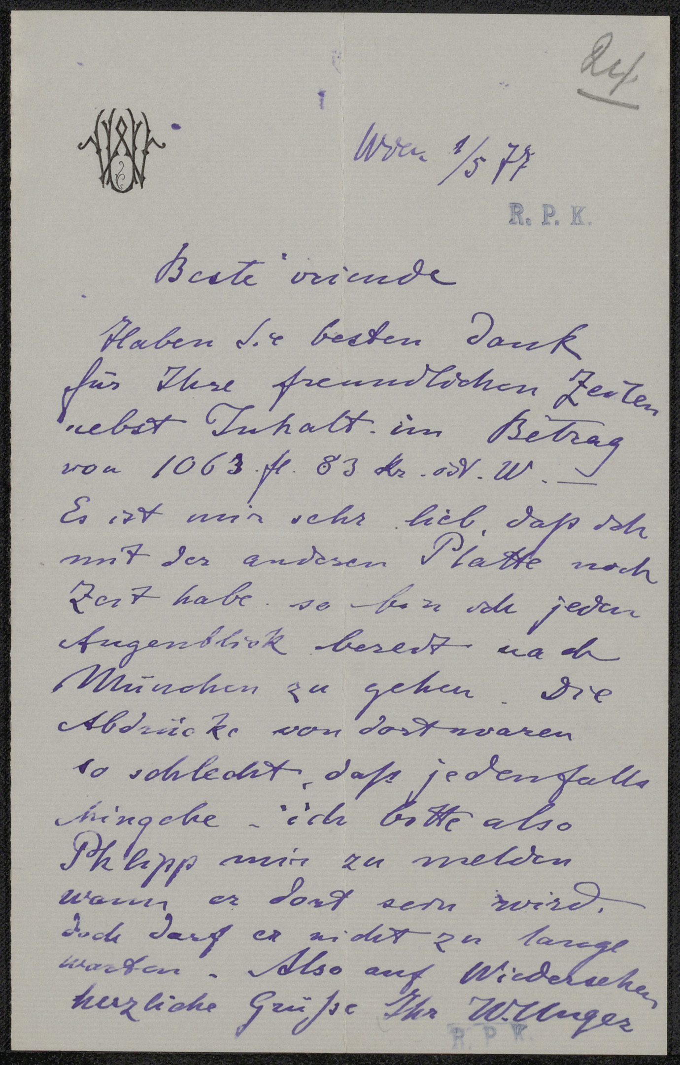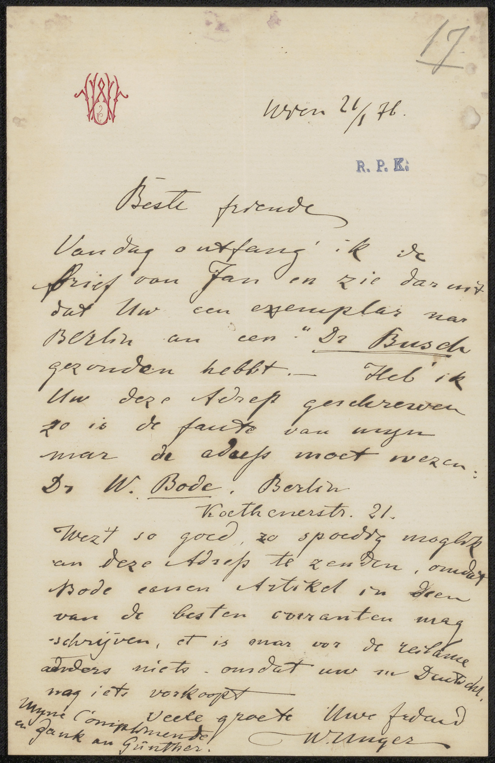 Brief aan Frans Buffa en Zonen