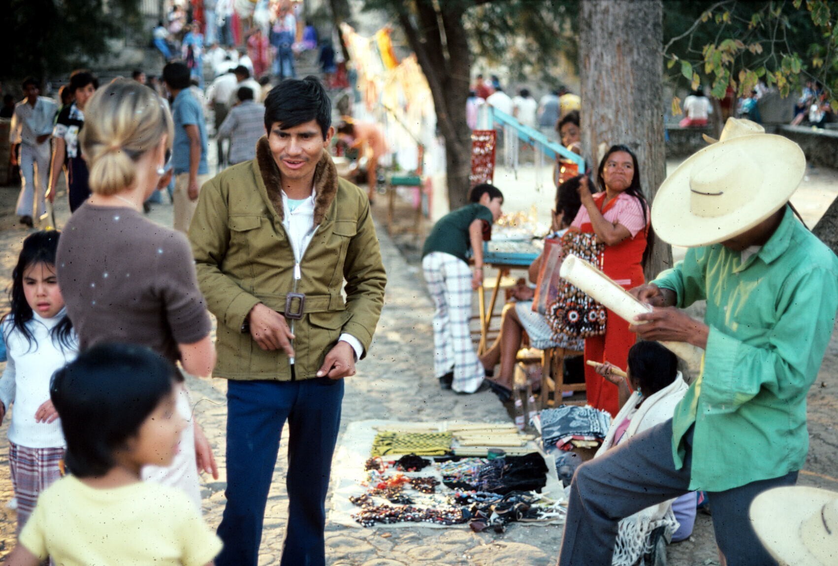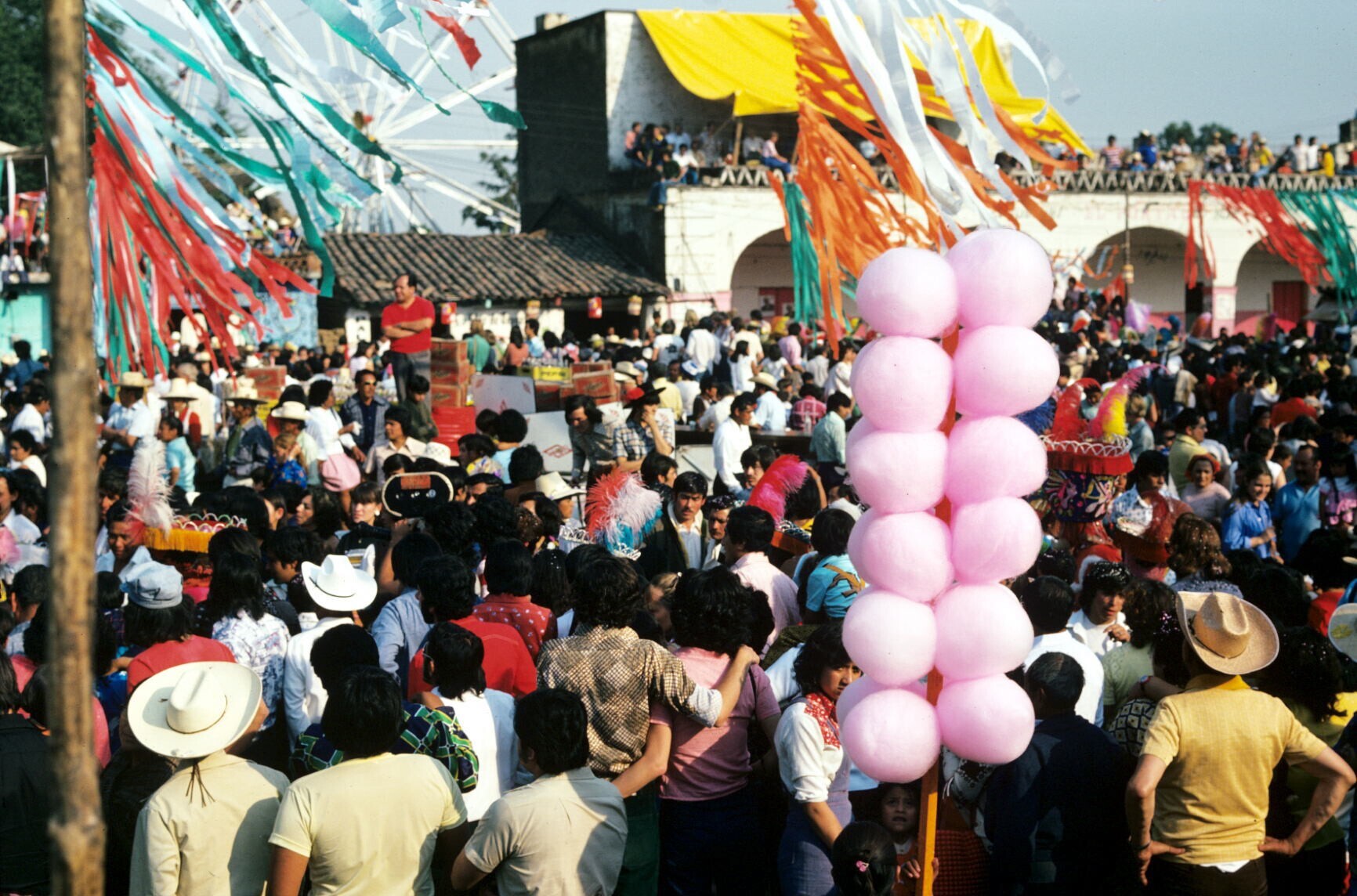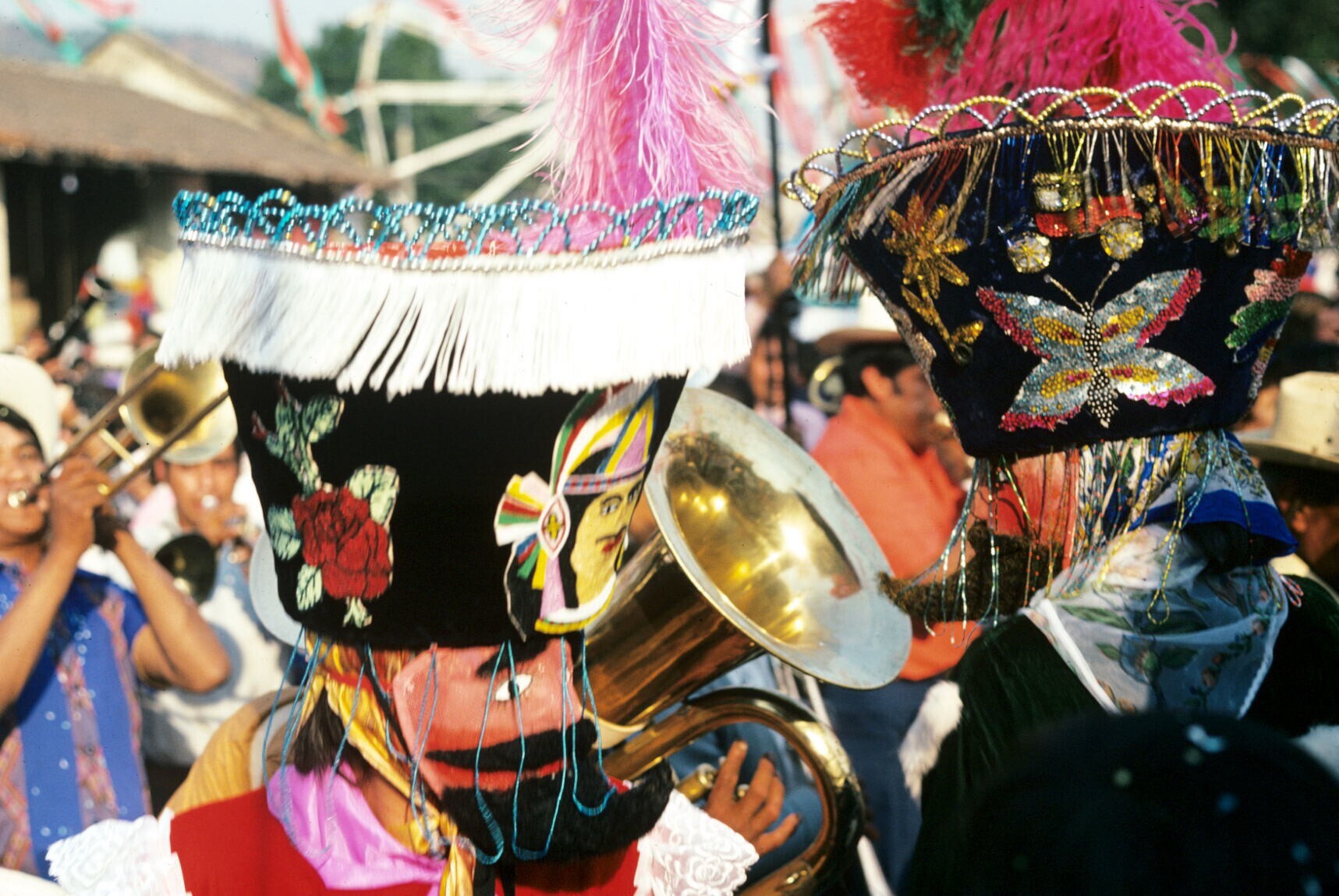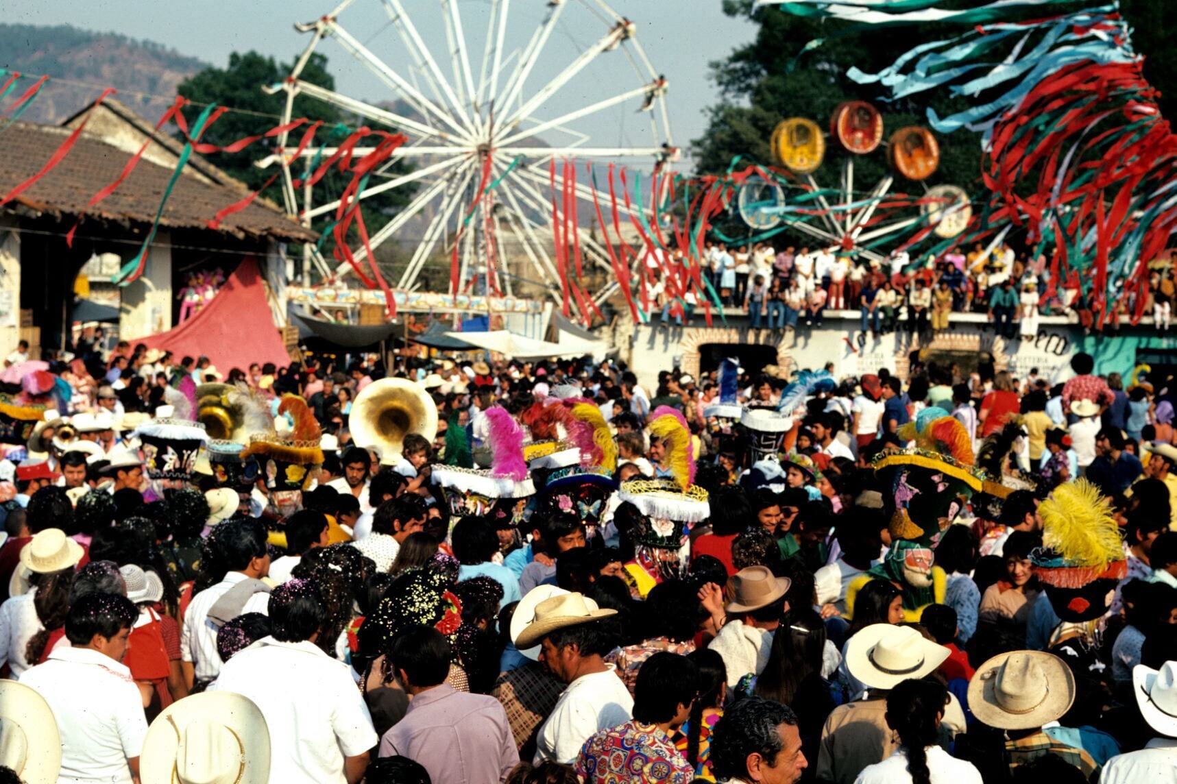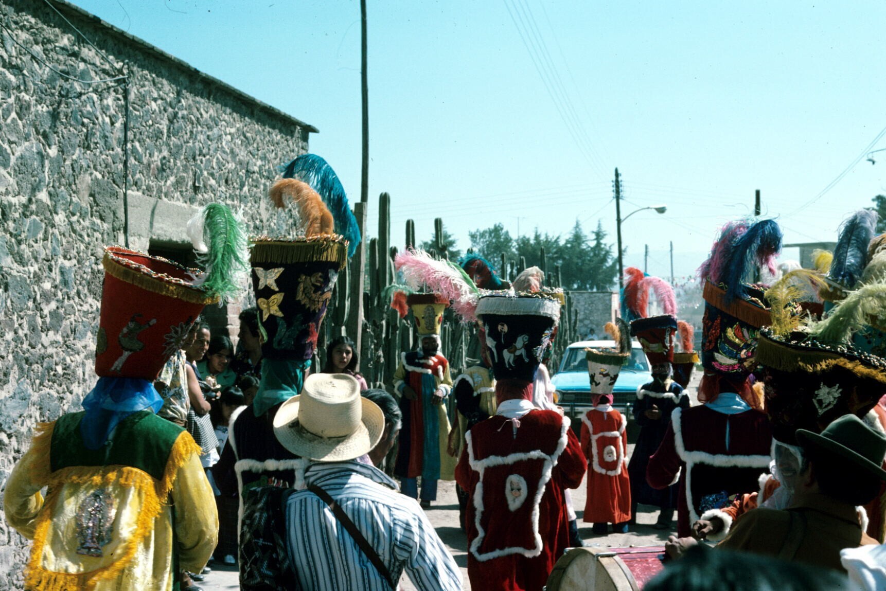 Chinelos (dansers), met 'feria' (kermis) op achtergrond