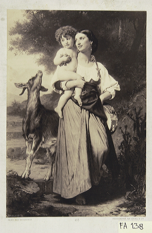 Jonge moeder in dracht der Campagna met kindje en ge...