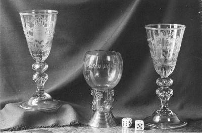 Foto van twee kelkglazen en een roemer