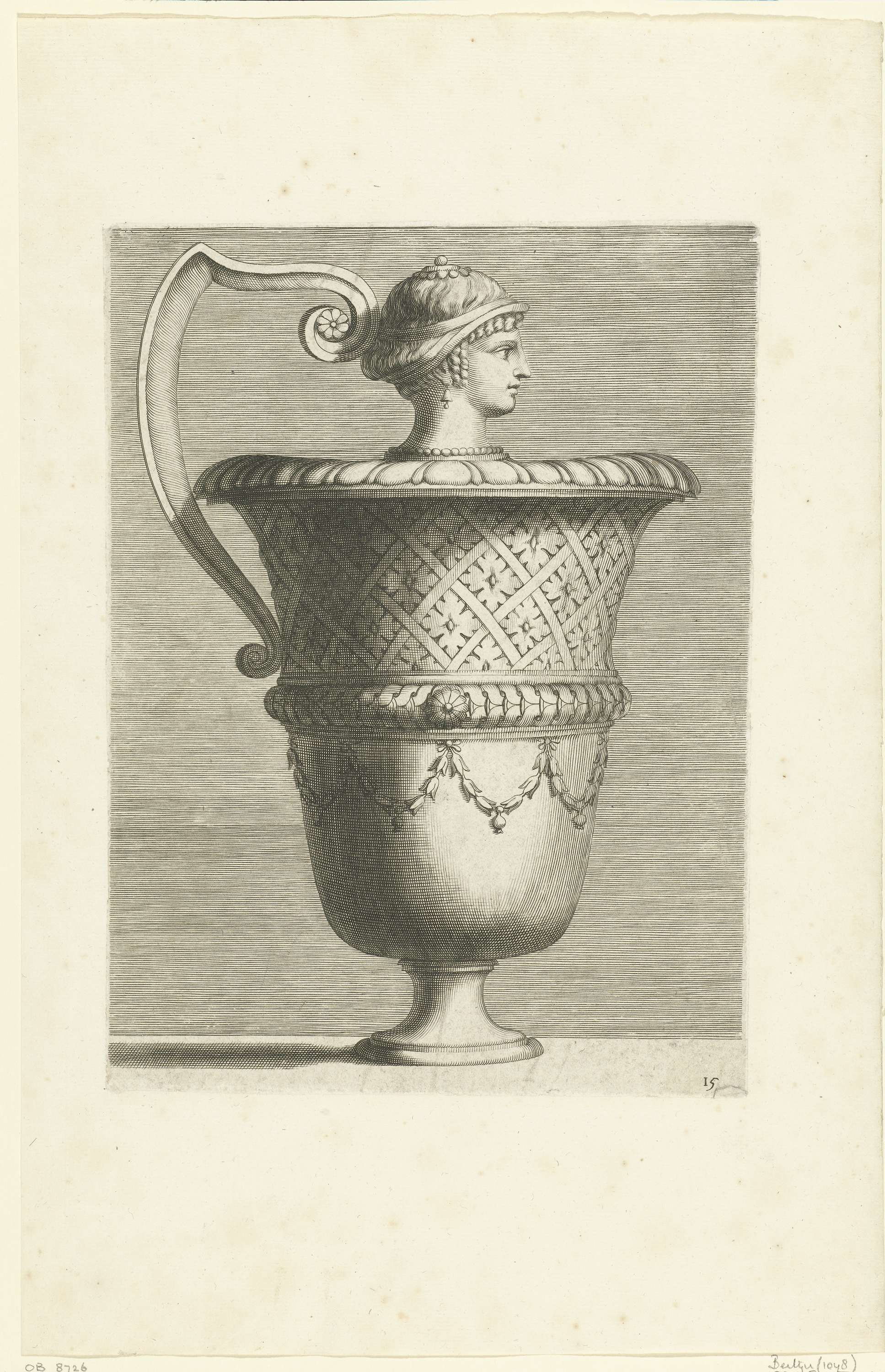 Schenkkan met vrouwenhoofd op deksel