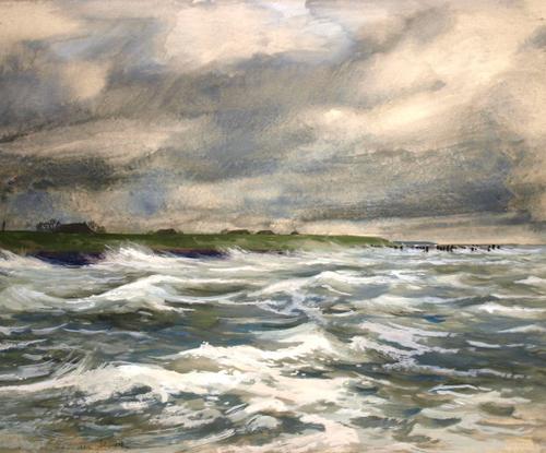 Schilderij in olieverf getiteld 'Gezicht vanuit zee ...