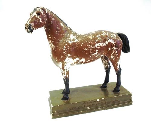 Schaalmodel in gips van een Oldenburger paard gebrui...