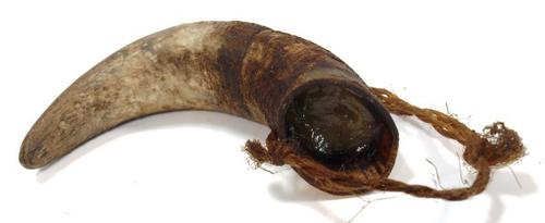 Koehoorn van hoorn gebruikt voor opslag van zalf om ...