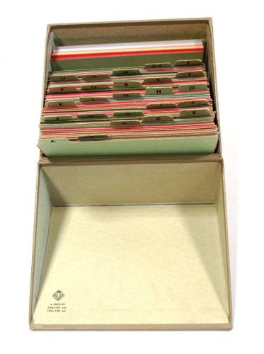 Kaartenbak van karton gebruikt als klantenbestand va...
