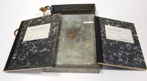 Houder van zink met melkcontroleboeken van monsterne...