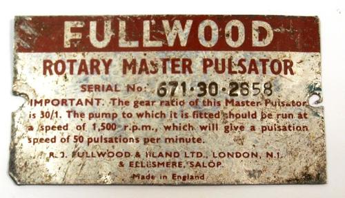 Typeplaat van metaal gebruikt voor een pulsator type...
