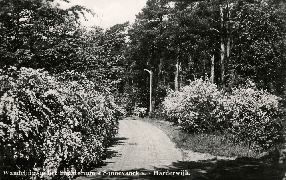 Prentbriefkaart getiteld 'Wandeling op het Sanatoriu...