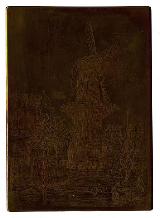 Metalen cliché voor het afdrukken van ets van molen ...