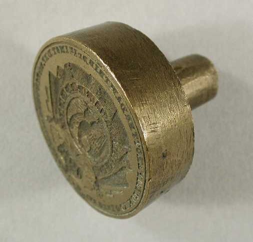 Koperen zegelstempel met onbekend familiewapen