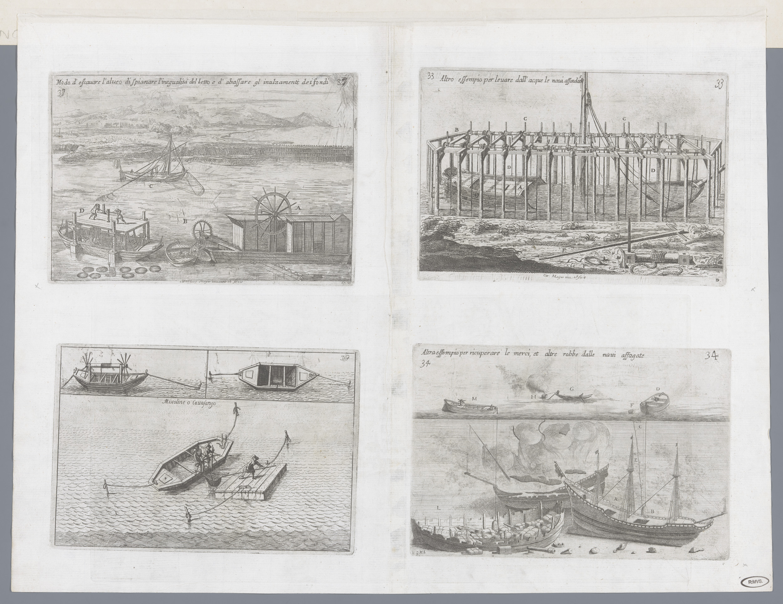 Vier voorstellingen van schepen en waterbouwkundige ...
