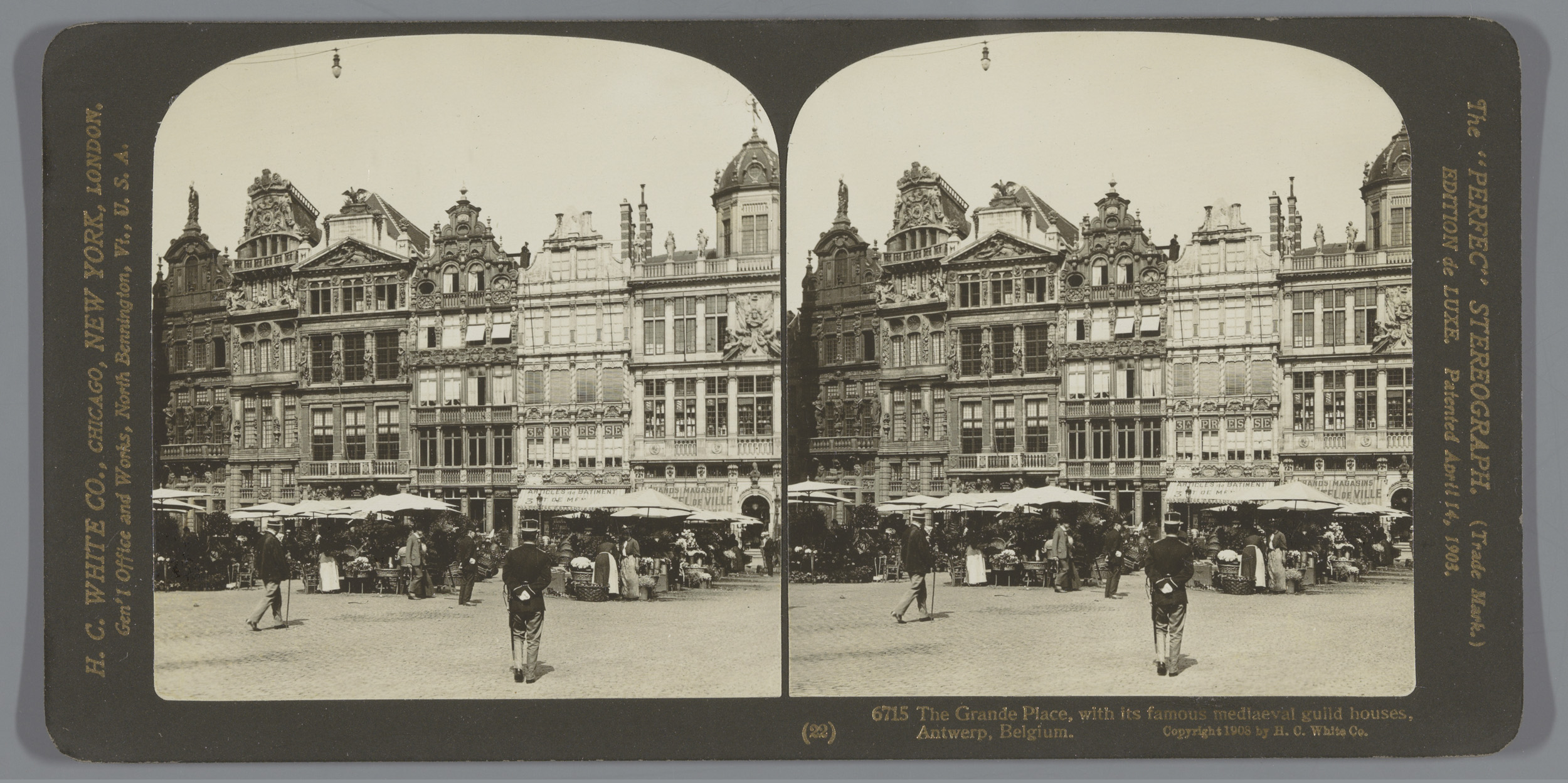 Gezicht op een bloemenmarkt en het Huis van de Herto...