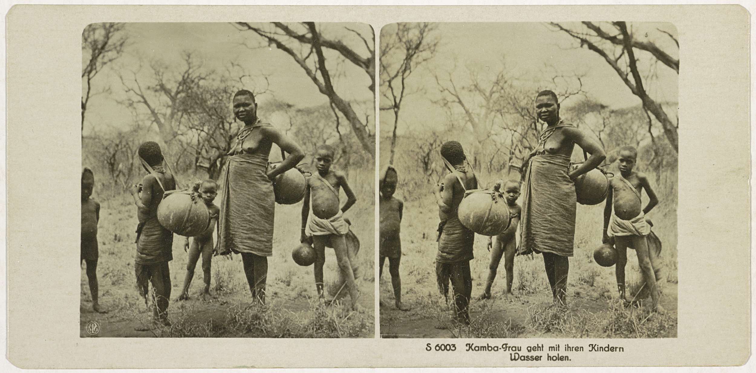 Vouw en kinderen van het Kambavolk halen water