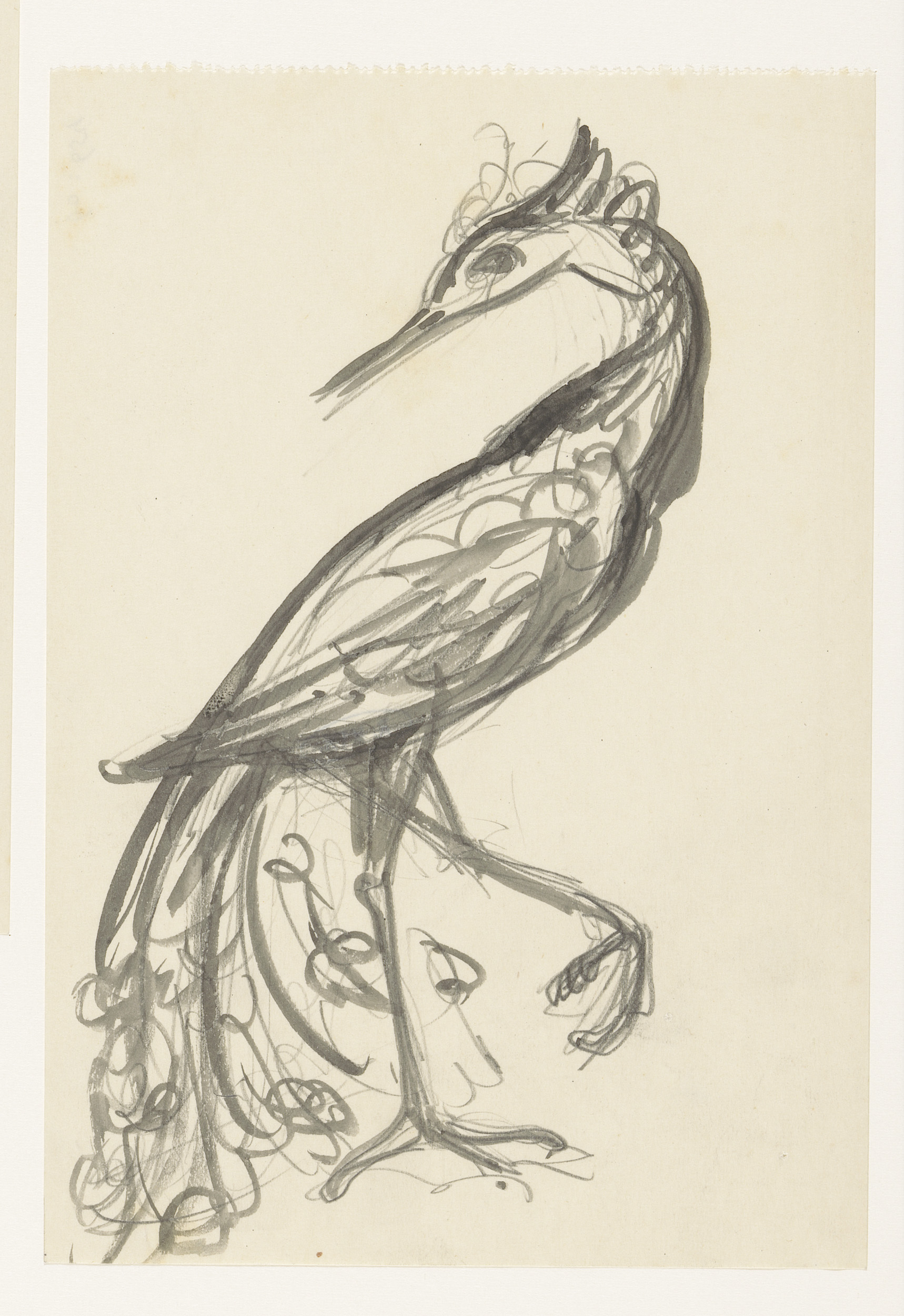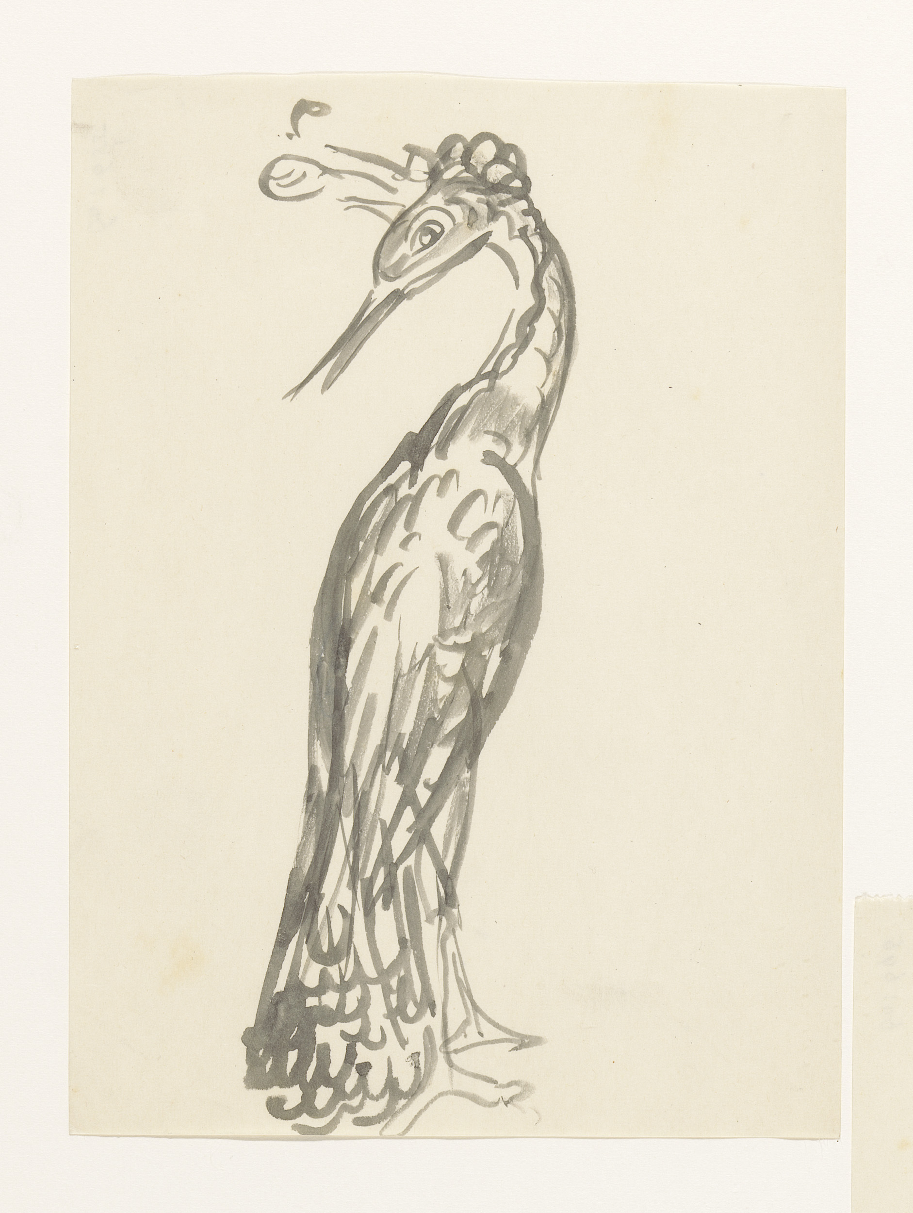 Reiger met zijn kop naar achter gedraaid en zijn poo...