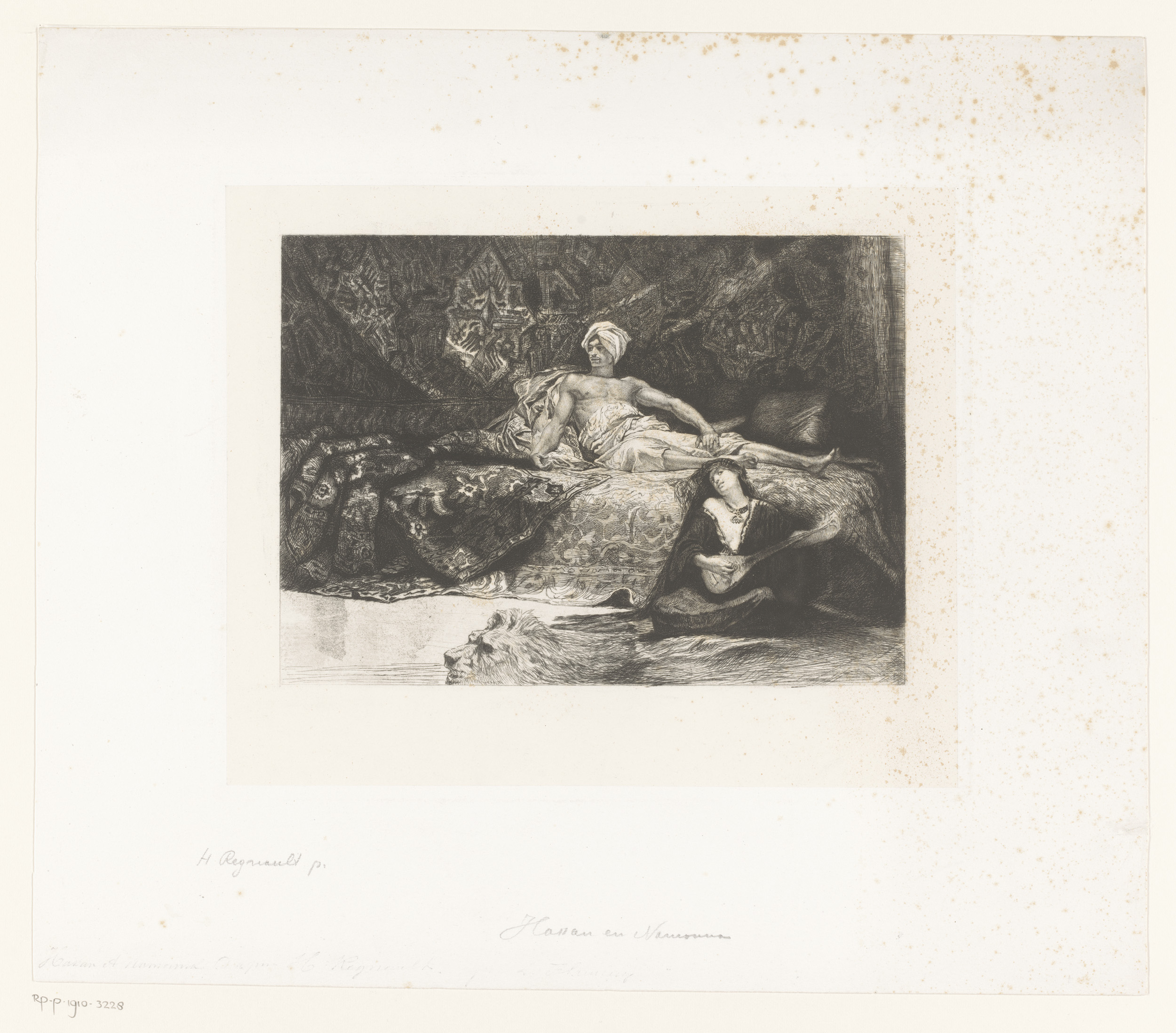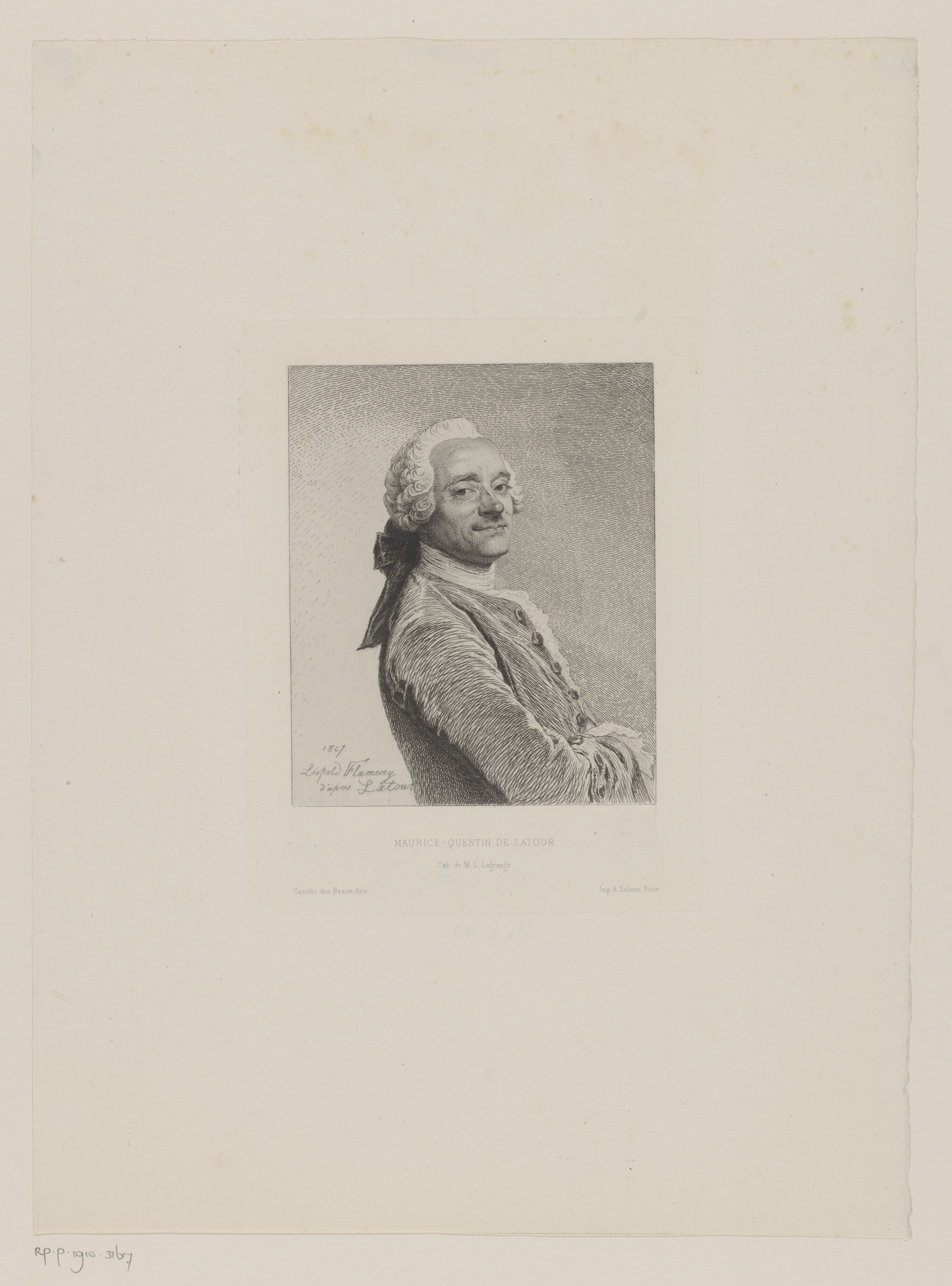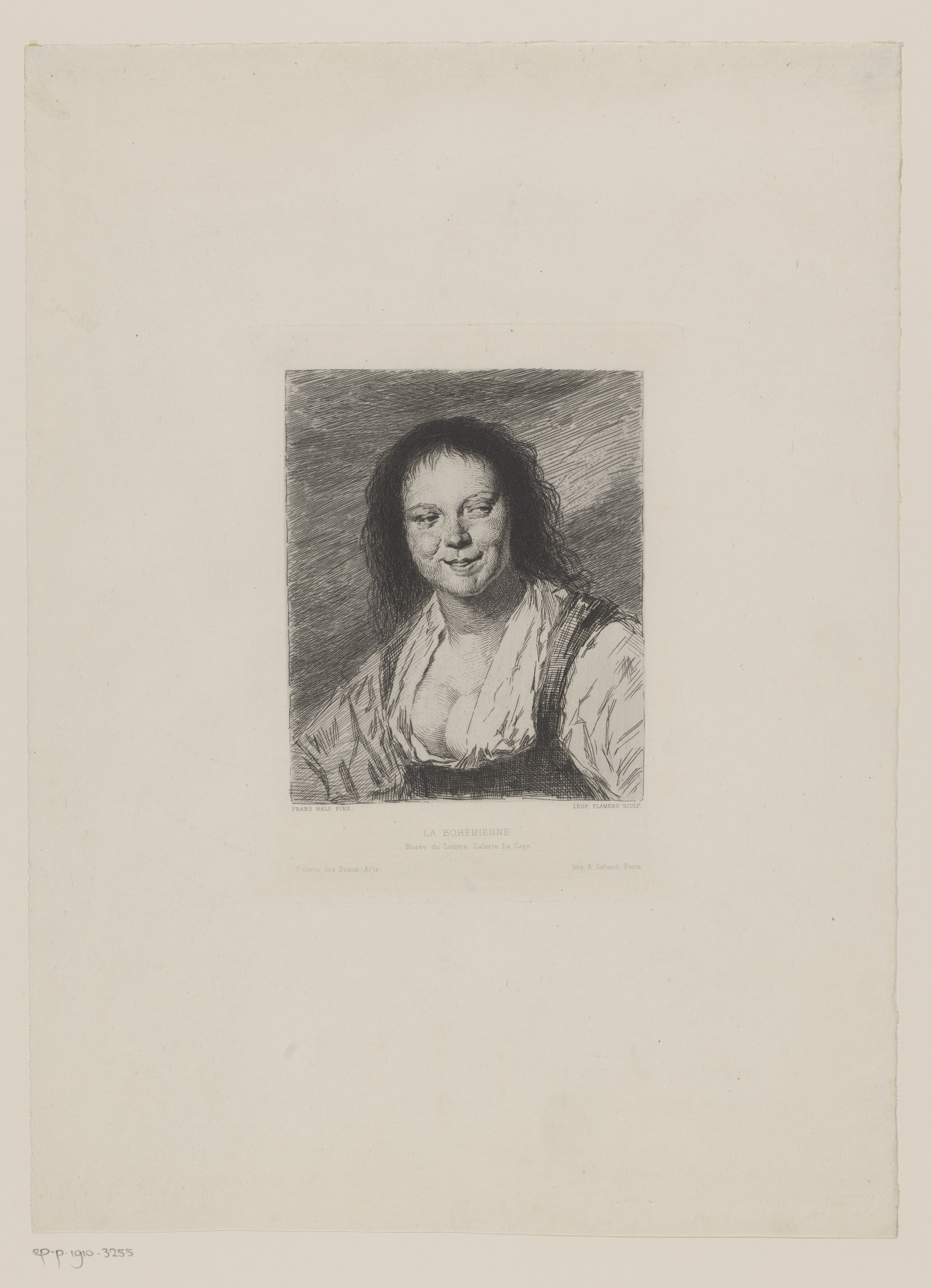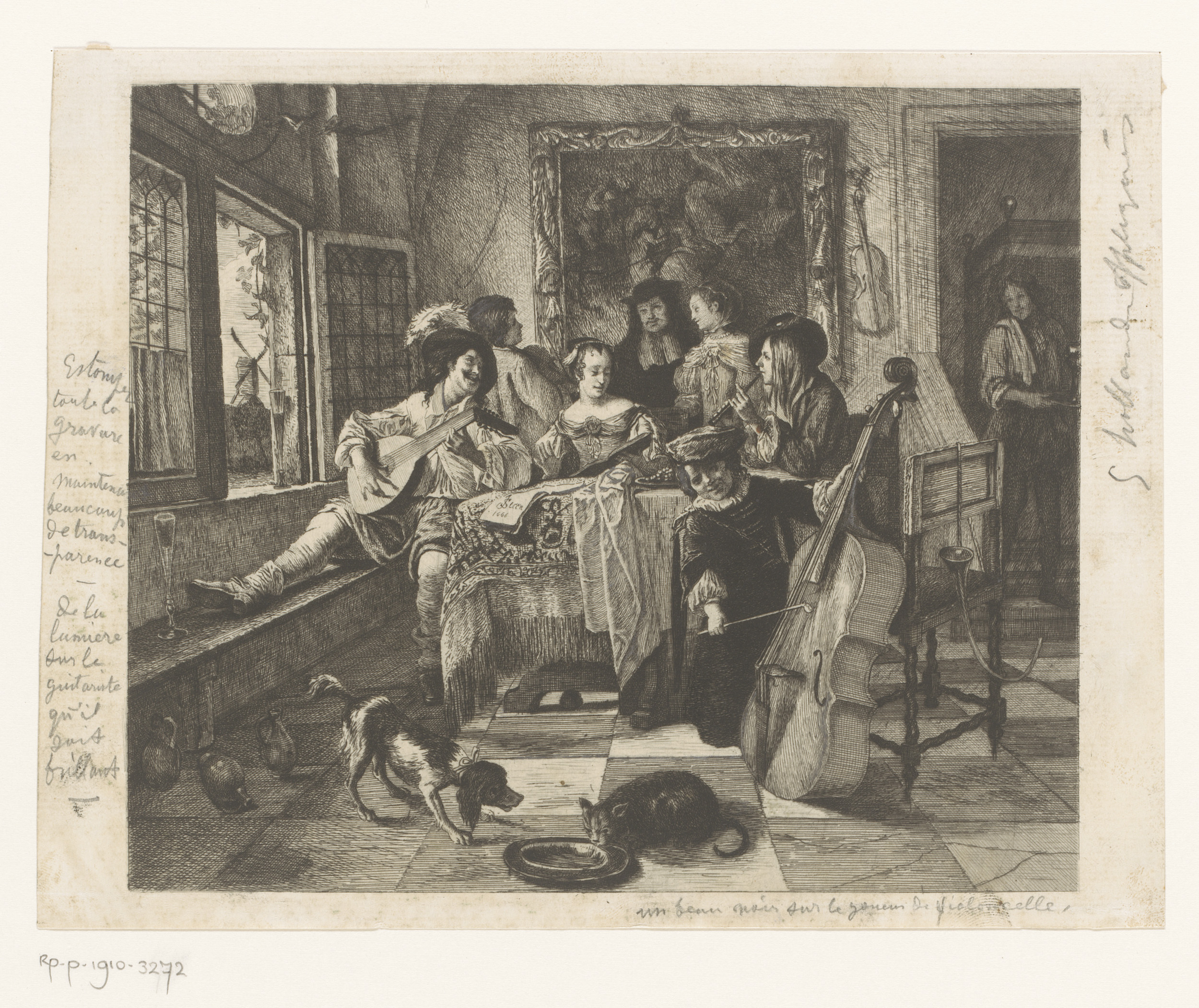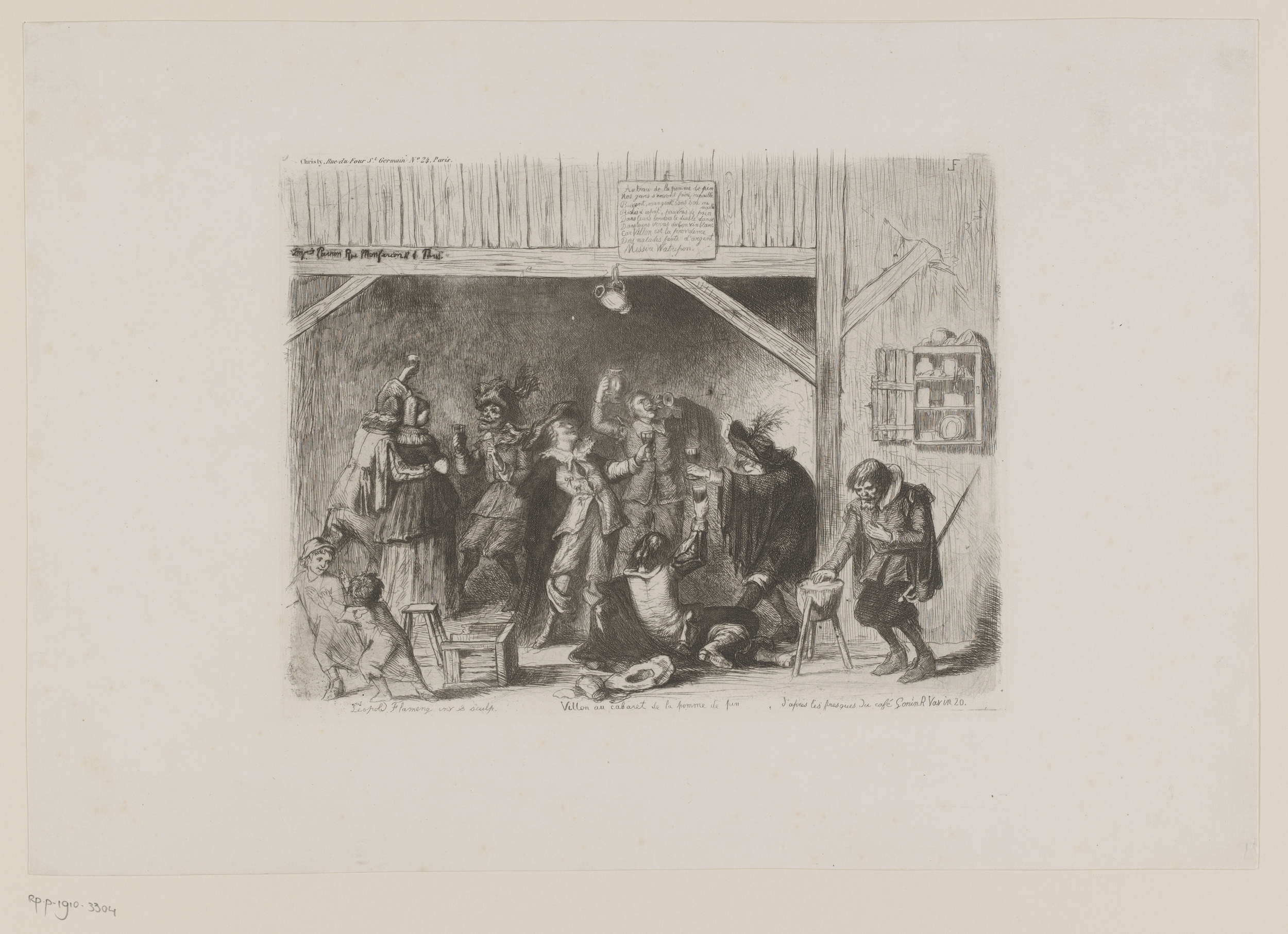 Manon Lescaut met een spiegel in de hand en twee mannen