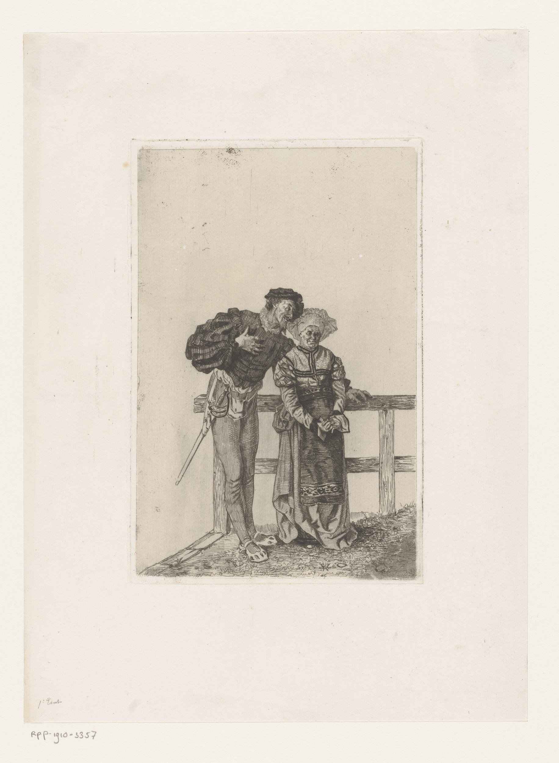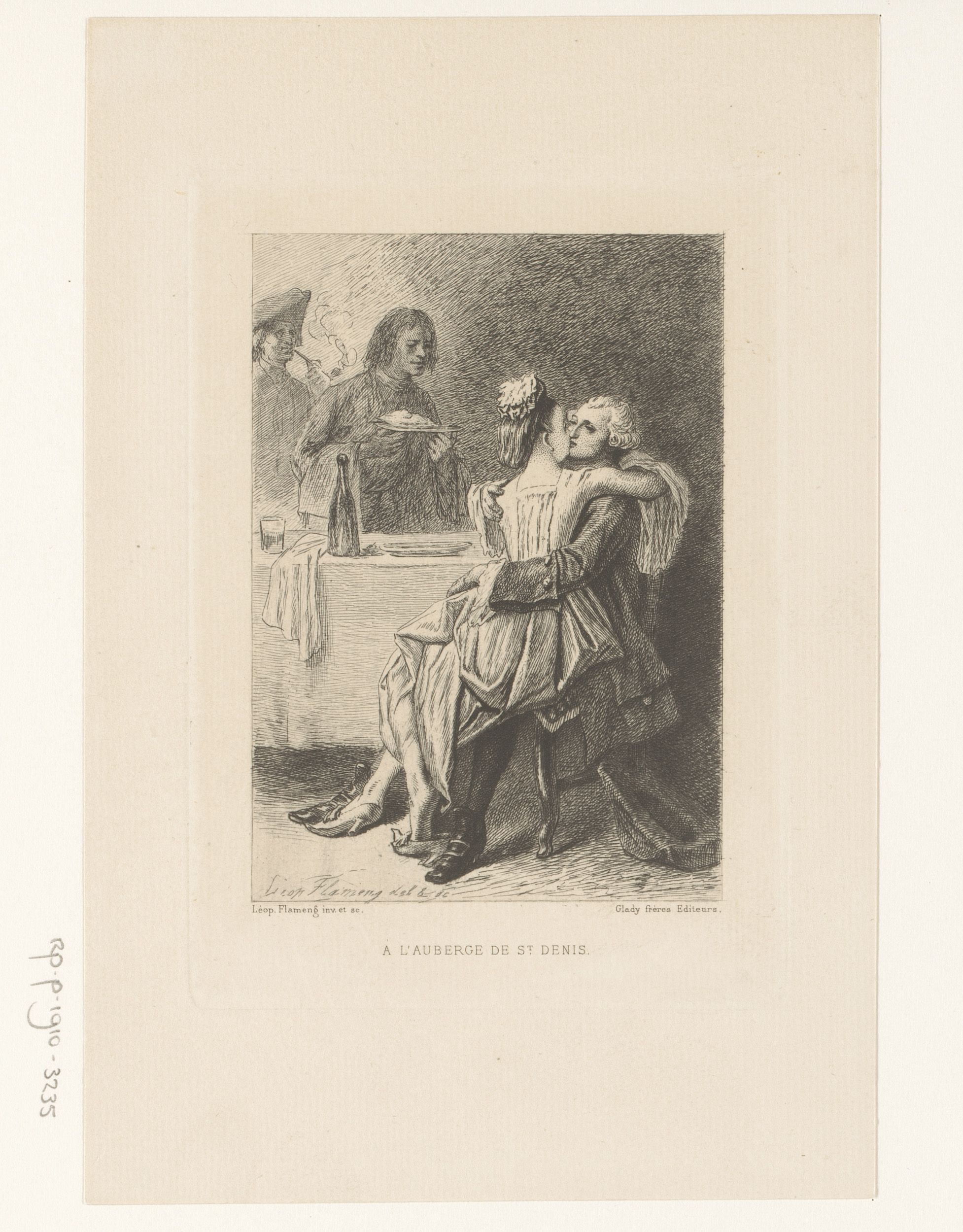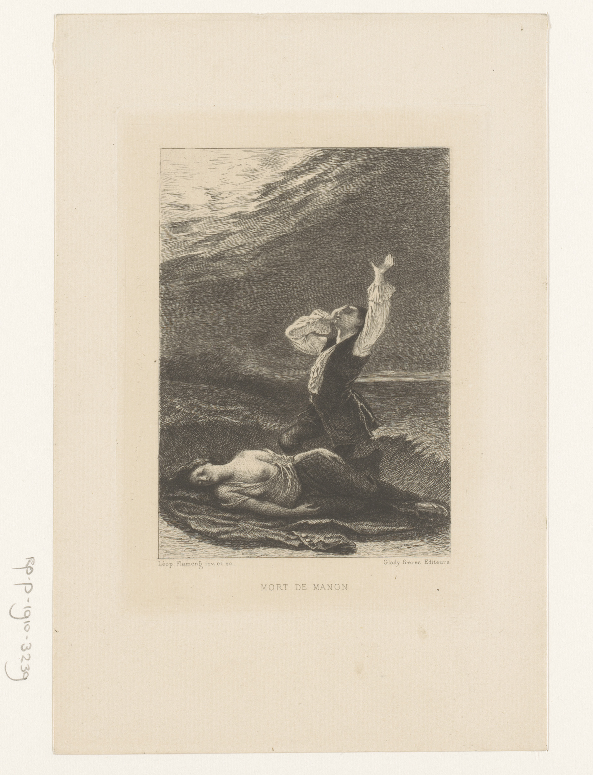 Manon Lescaut en Chevalier des Grieux zoenend in een...