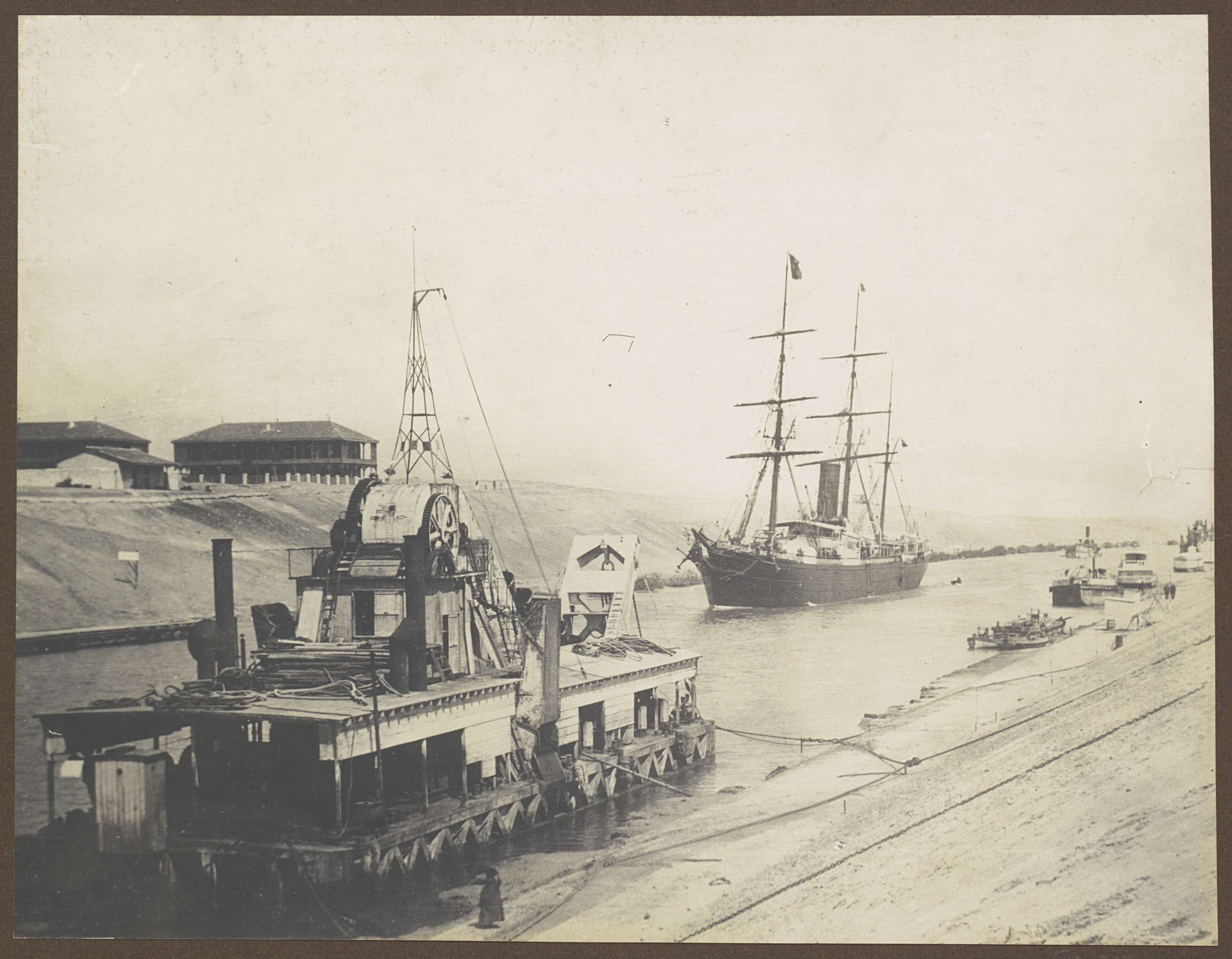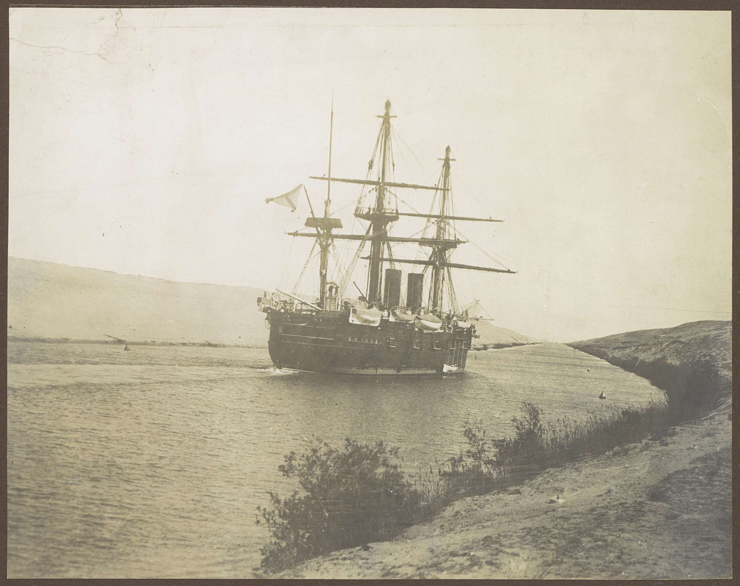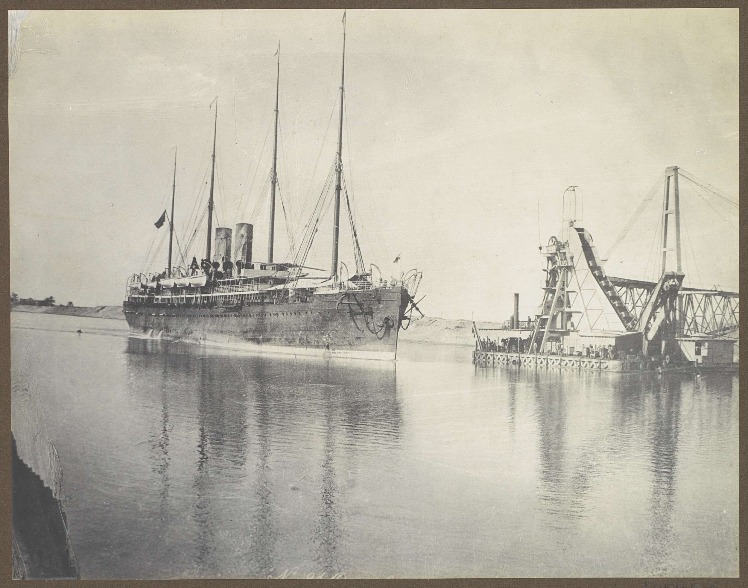 Schip op een water, vermoedelijk bij het Suezkanaal
