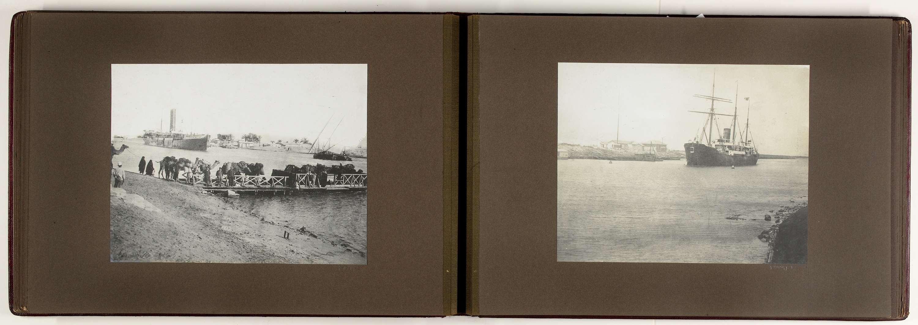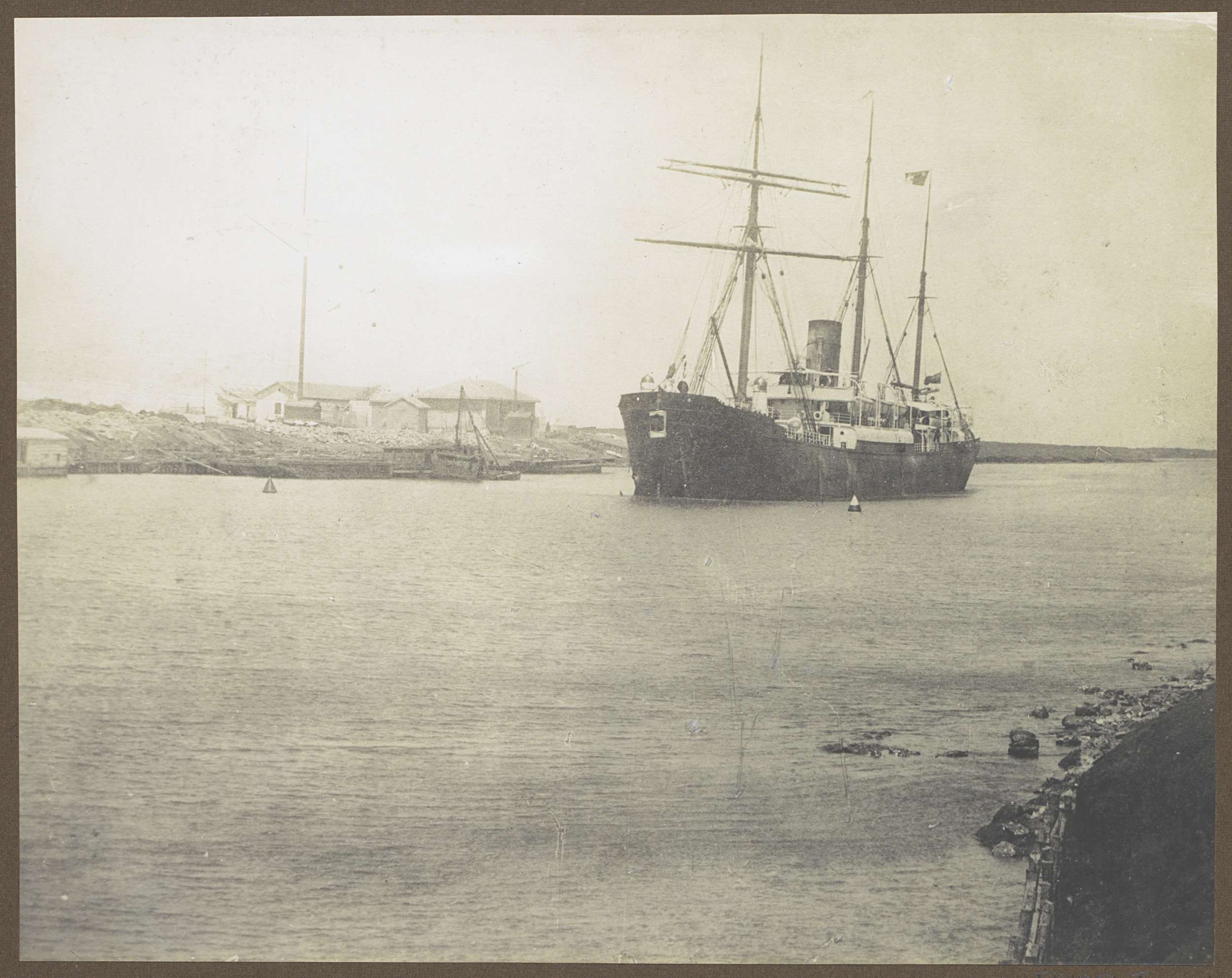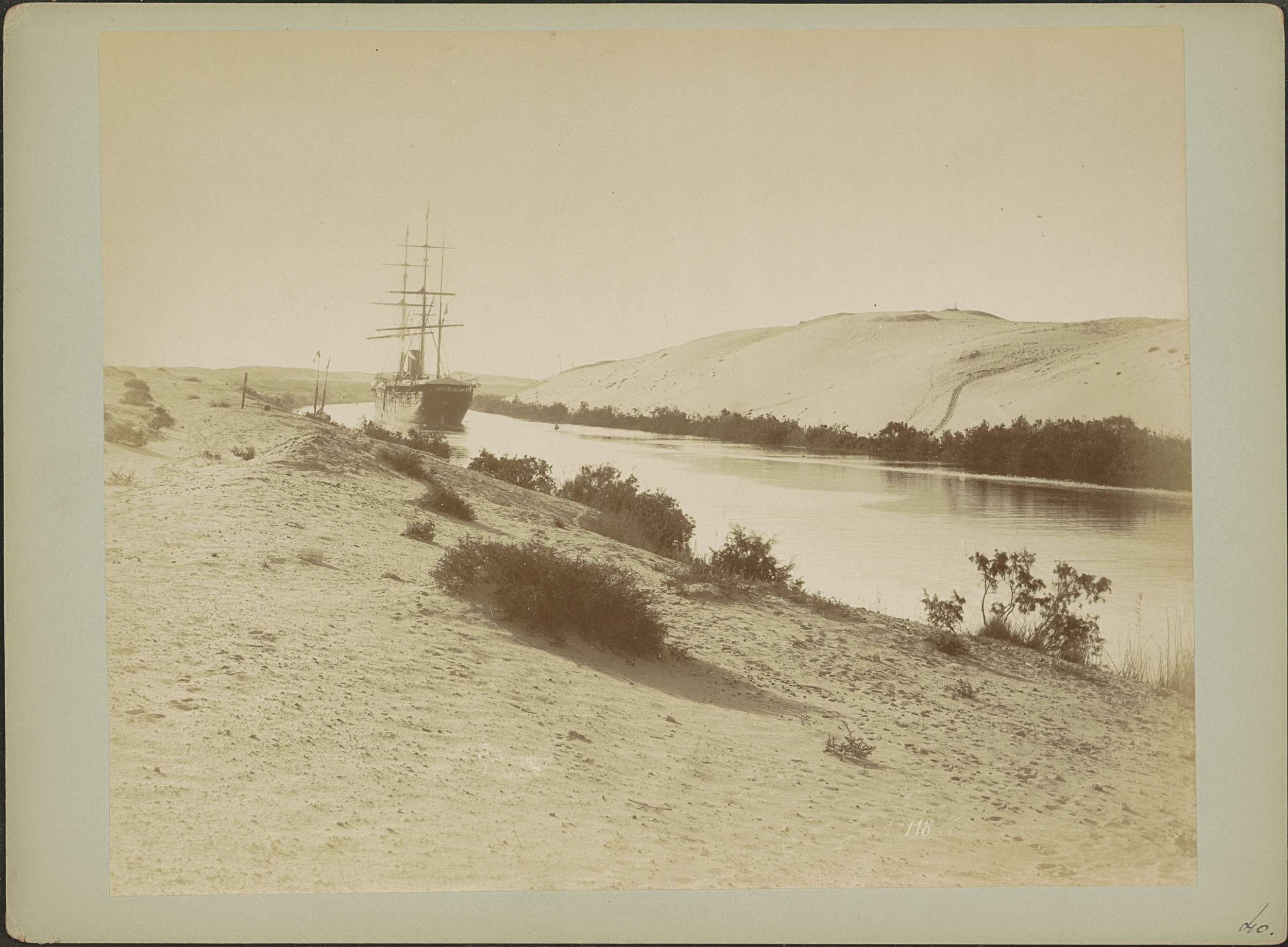 Schip op een water, vermoedelijk bij het Suezkanaal