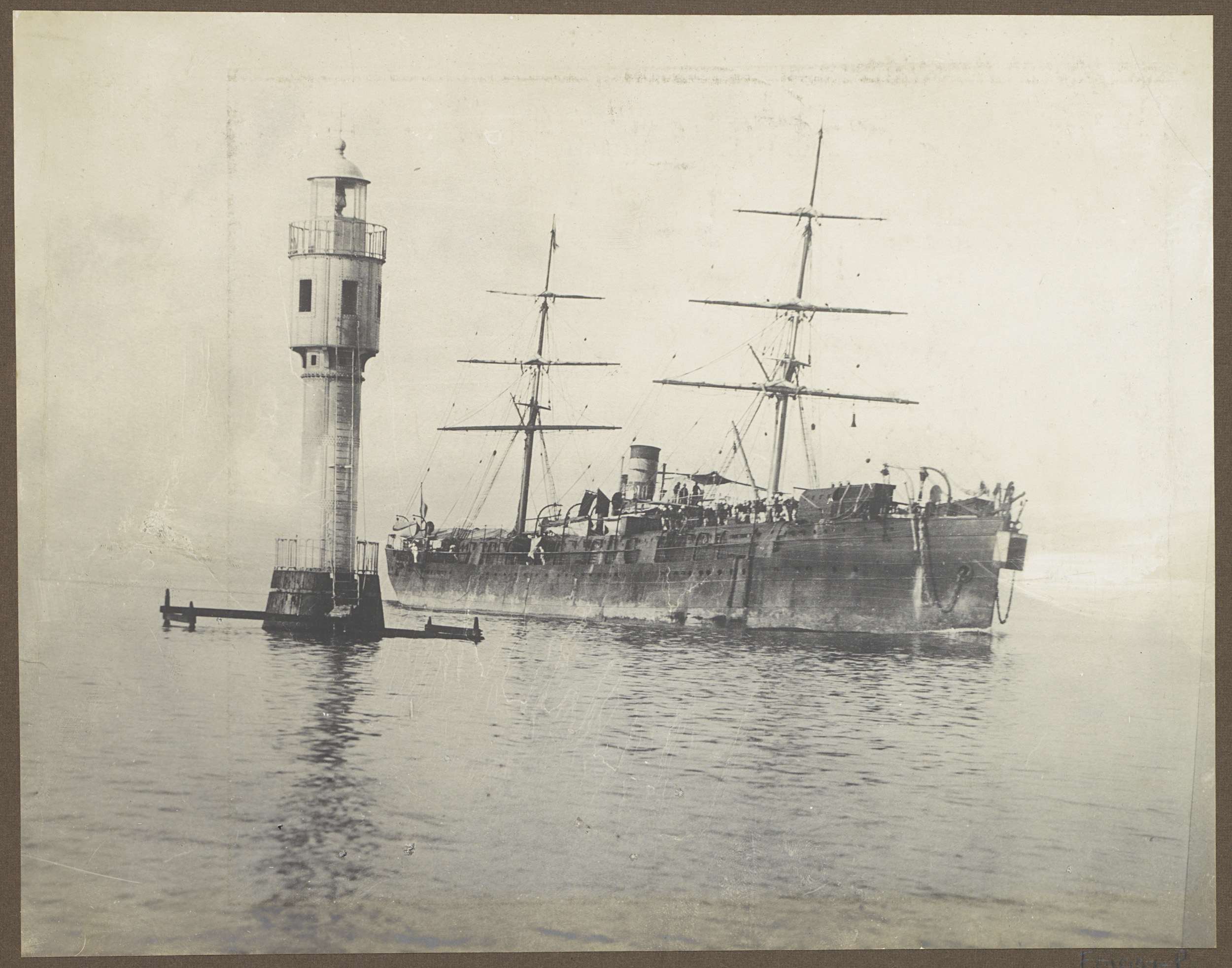 Schip passeert een vuurtoren, vermoedelijk bij het S...