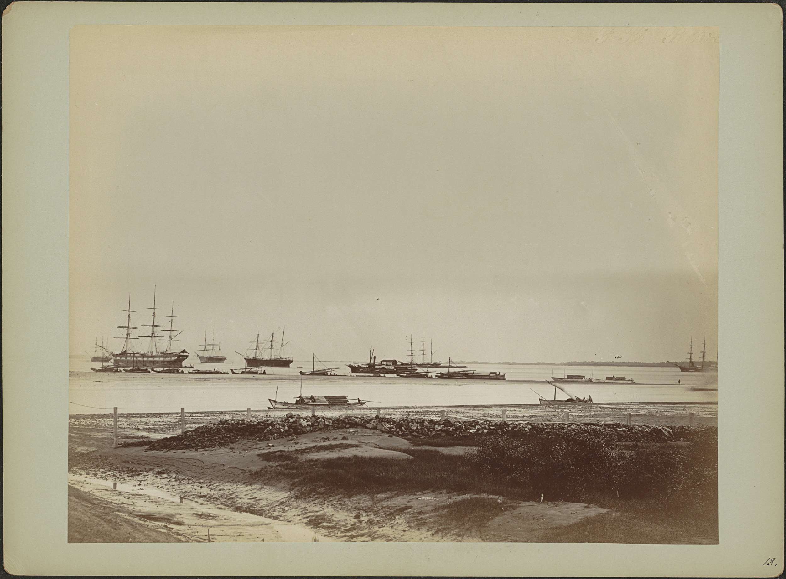Gezicht op schepen op de rede van Soerabaja